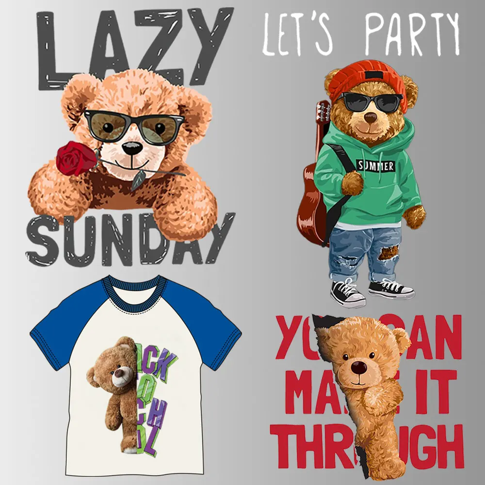 Милые нашивки с медведем, теплопередающие виниловые наклейки на одежду, термотрансферы, аппликация для футболки, худи, аксессуары для детей