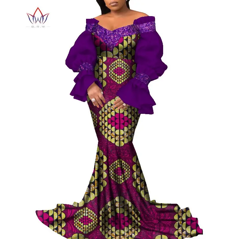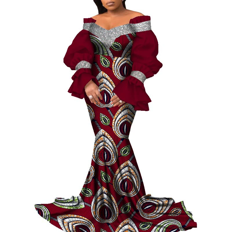 Bintarealwax сексуальное вечернее платье с пышными рукавами элегантное платье с Африканским восковым принтом винтажные платья для женщин без бретелек платье в пол WY8799