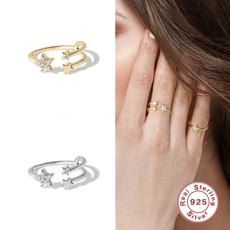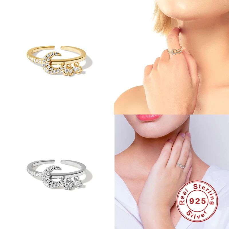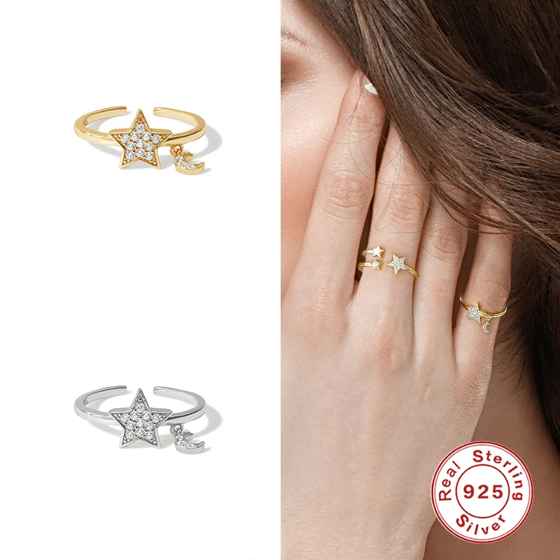 Aide реальные 925 пробы серебро минималистский разноцветный Цирконий Луна, Звезды разъединяющееся кольцо для очаровательных Для женщин вечерние ювелирные украшения милый подарок