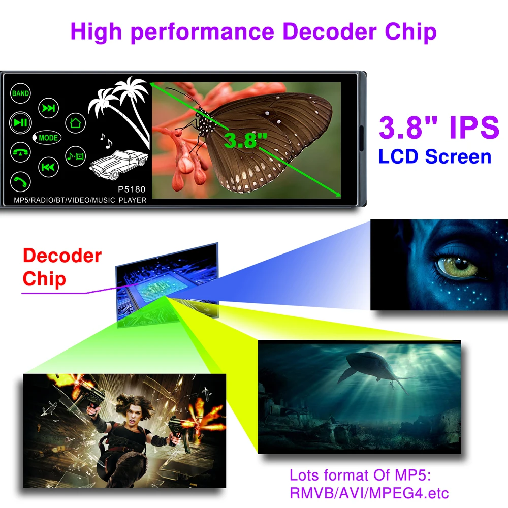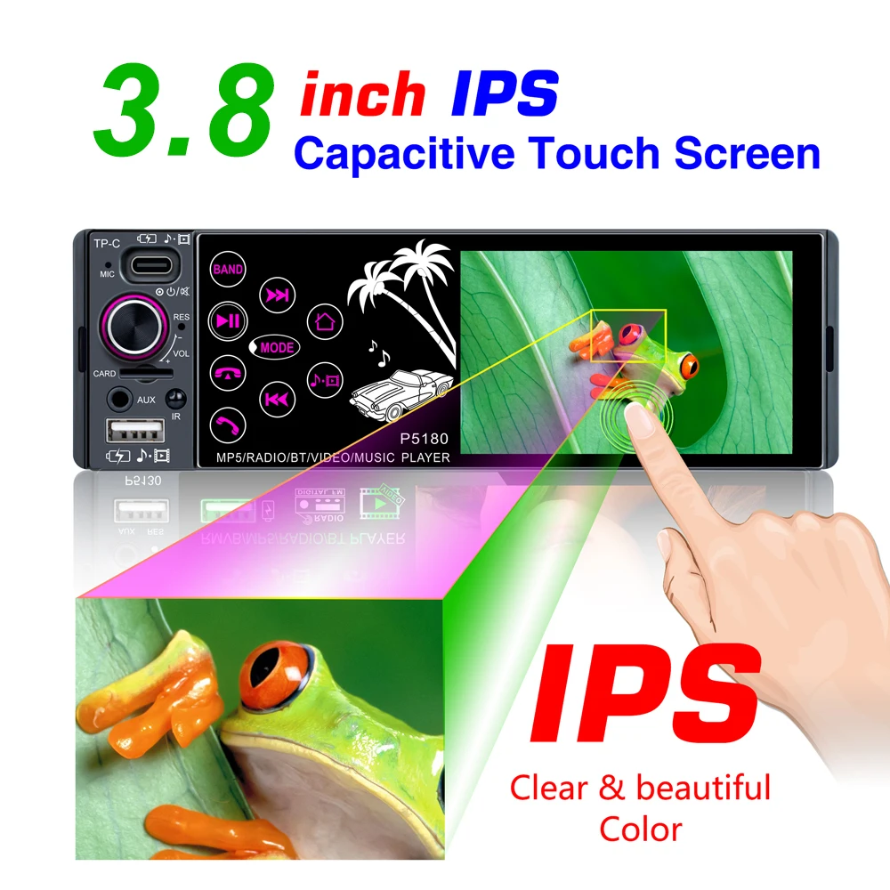 AMPrime 1din 3,8 дюймов сенсорный HD IPS емкостный экран Поддержка Bluetooth управление рулевым колесом USB FM MP5 автомобильный мультимедийный плеер