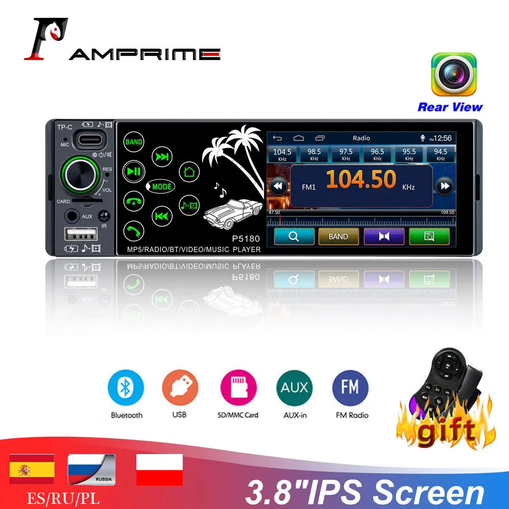 AMPrime 1din 3,8 дюймовый сенсорный HD IPS емкостный экран Поддержка Bluetooth управление рулевым колесом USB FM MP5 автомобильный мультимедийный плеер