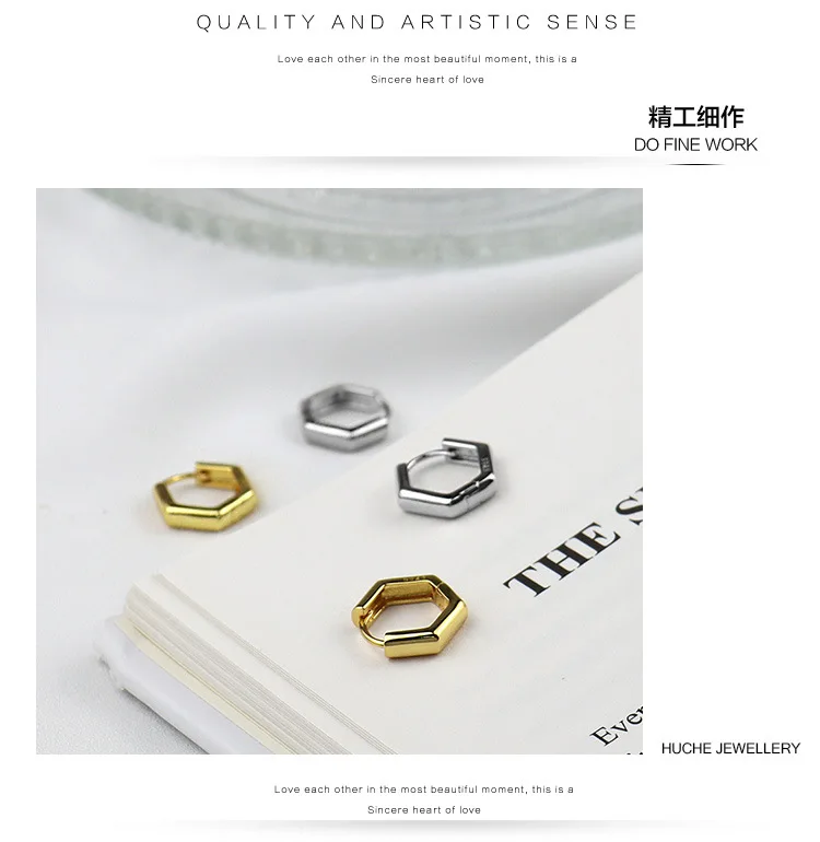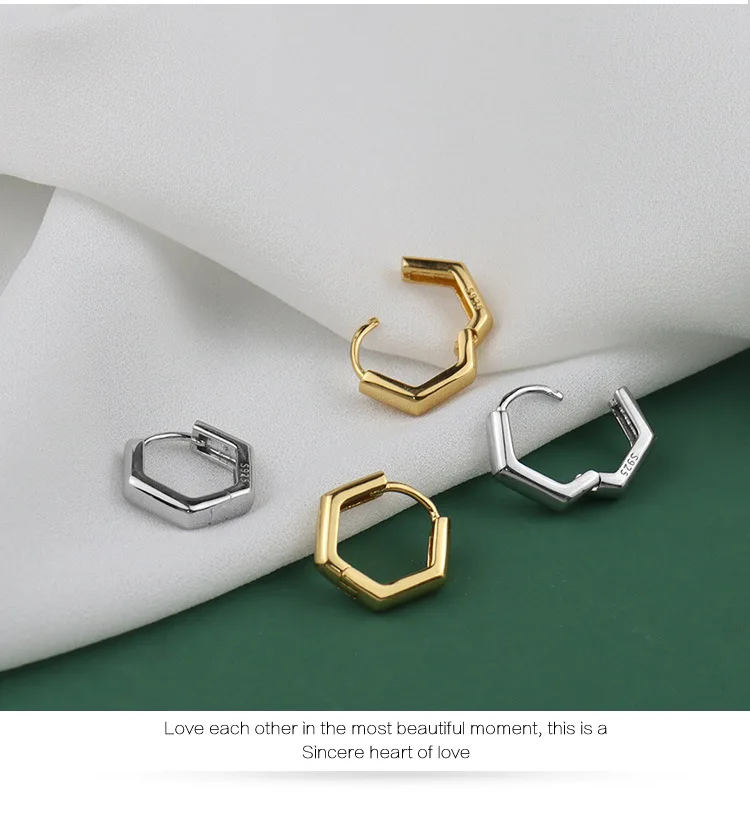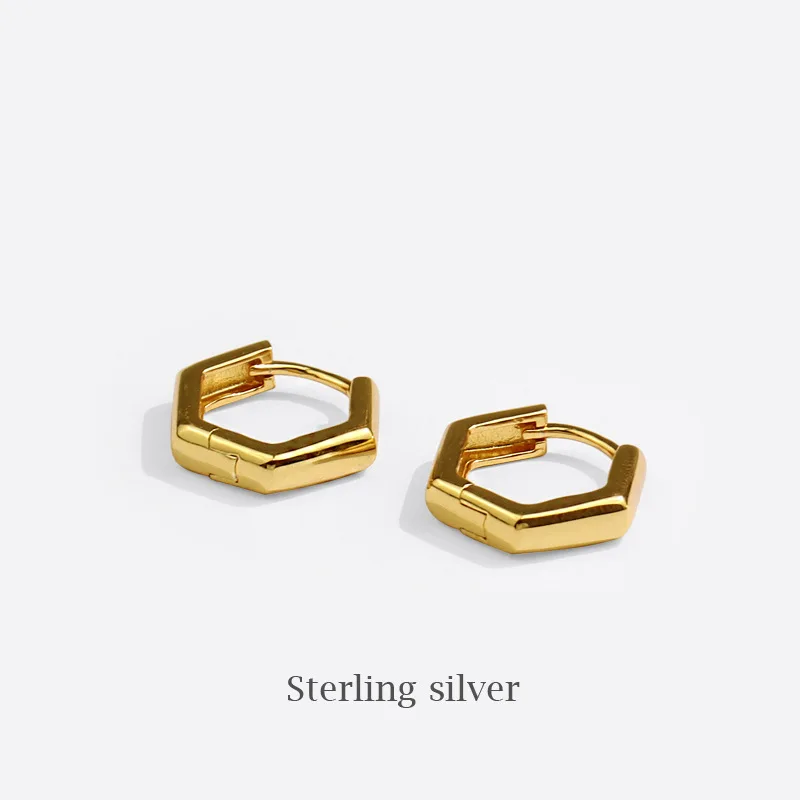 Серьги-кольца женские посеребренные с шестигранным узором