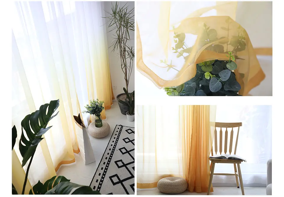 Тюлевые шторы LISM с градиентом, для гостиной, кухни, современные прозрачные Занавески для спальни, тканевые занавески