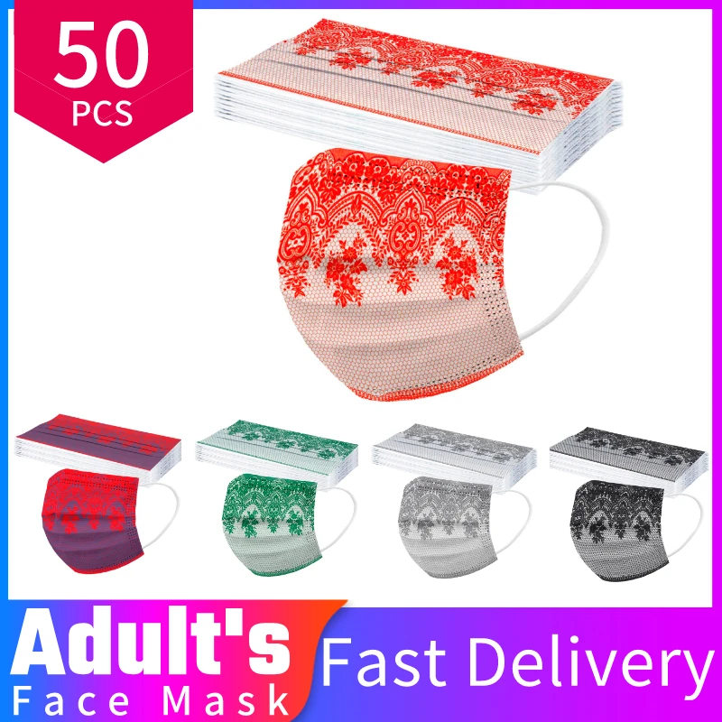 Маска для лица Одноразовая, Нетканая, с принтом, 3 слоя, фильтры для защиты ушей, Anti-PM2.5, 10-50 шт.