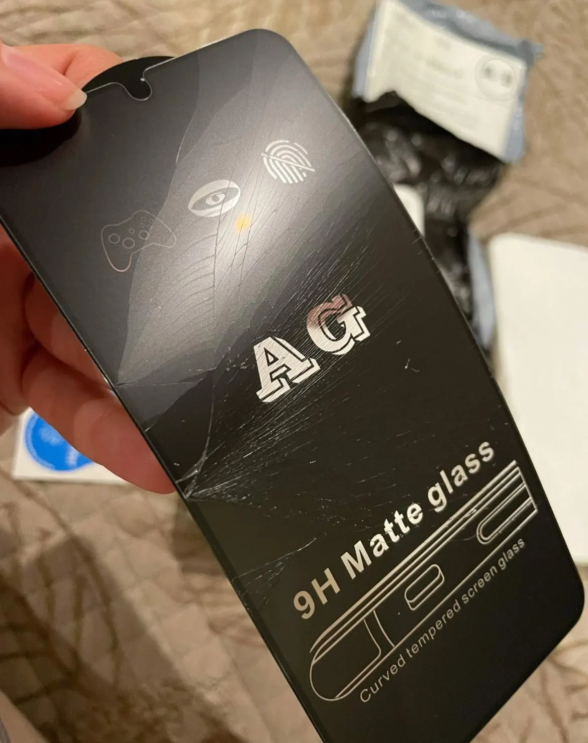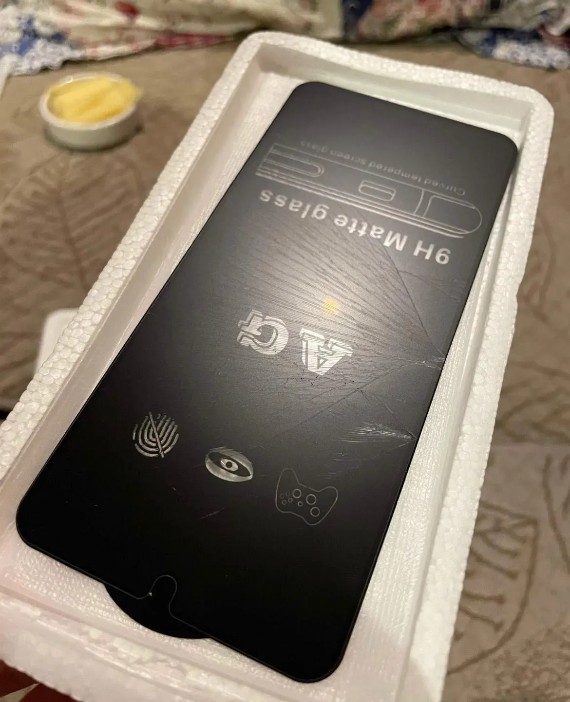 Ужасное защитное стекло, всё в мелких пюзырях.