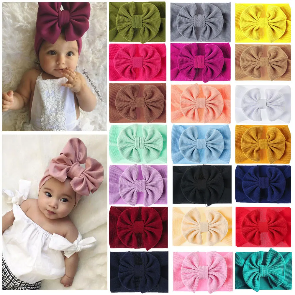 Повязка на голову с большим бантом для девочек, милая детская эластичная ленты для волос Детские Цельный тюрбан, аксессуары для волос для маленьких девочек, 2021