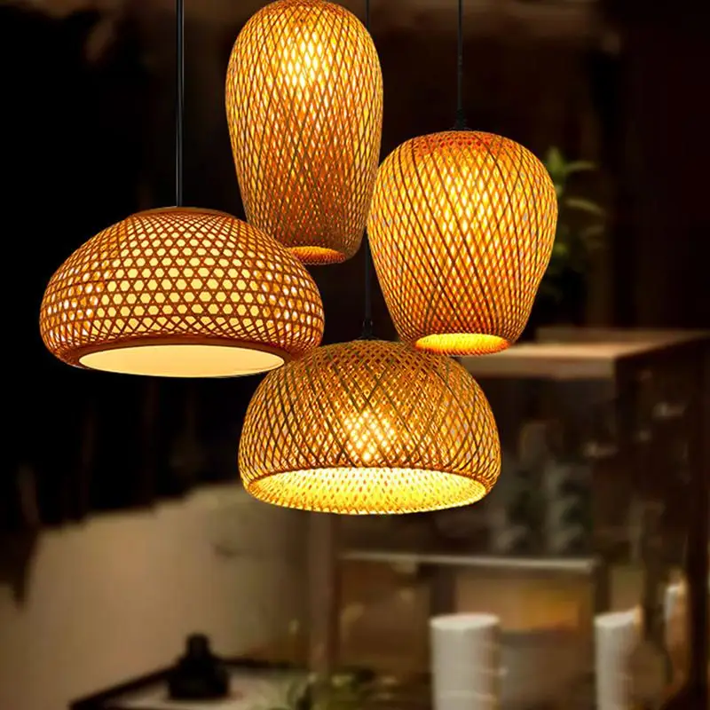 Подвесной светильник из натурального бамбука, плетеная ручная Люстр...