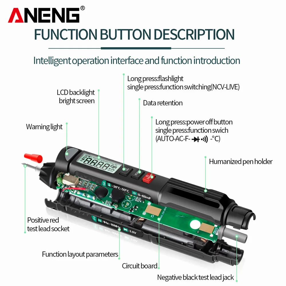6000 штук-это карманный 3 5/6 цифр, истинное эффективное значение, умный мультиметр в форме ручки, нет необходимости поворачивать циферблат, чтобы выбрать функцию.
