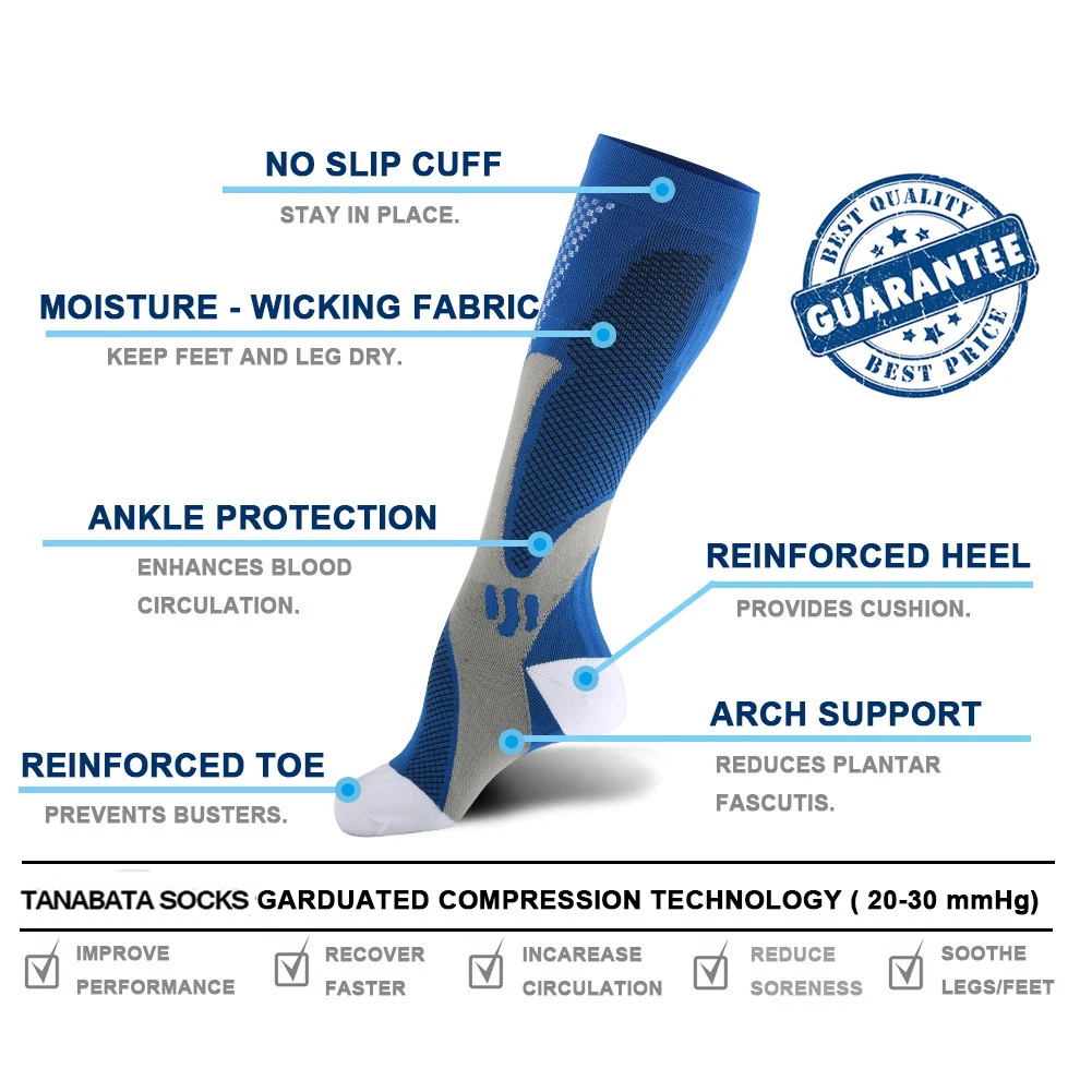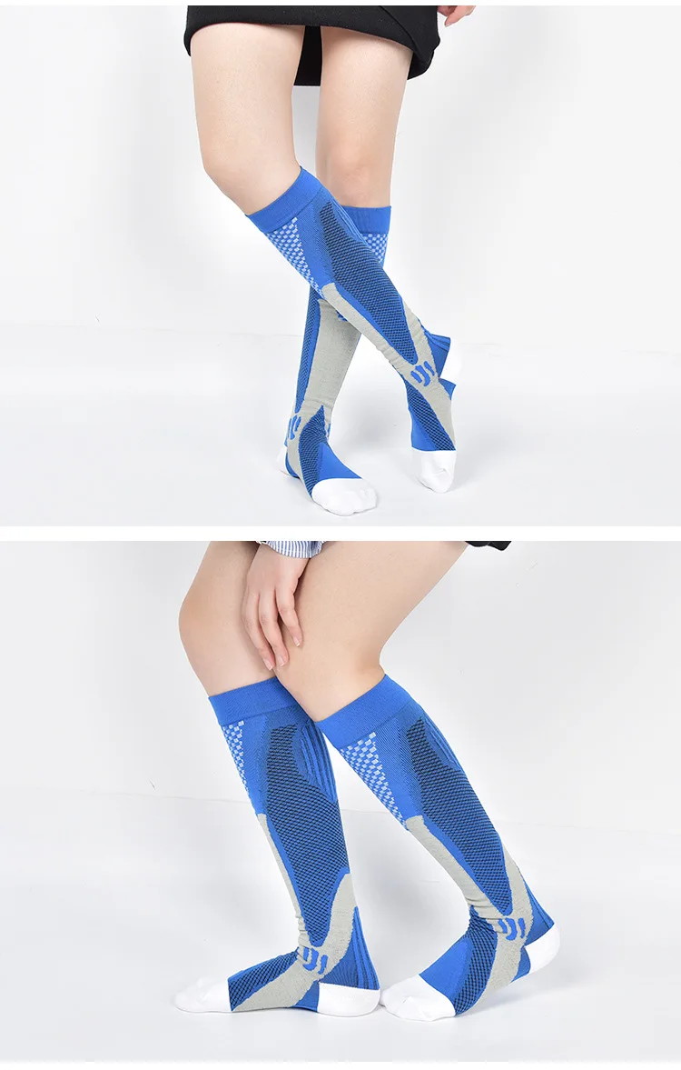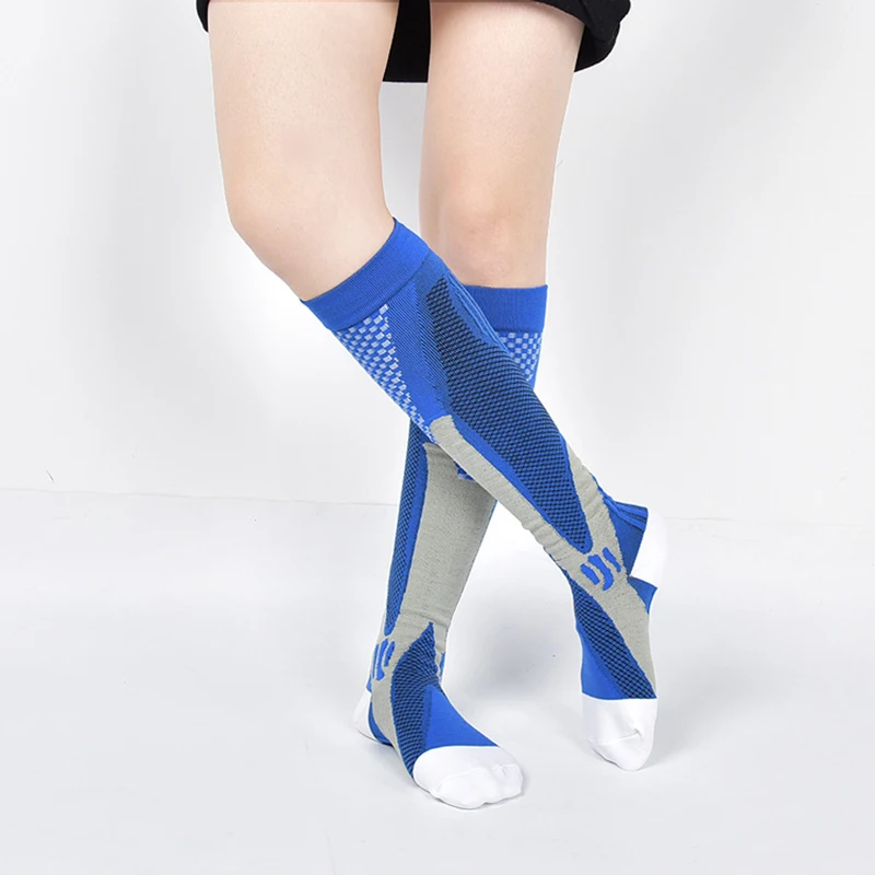 Высокое качество Для женщин Компрессионные носки мужские цветные спортивные анти-снятия усталости боль кормящих Давление сапоги до колена Футбол носки