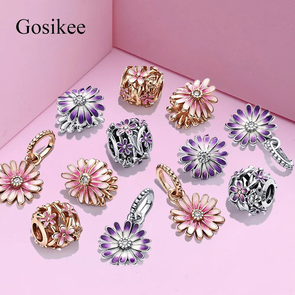 2021 Новые моменты, подвески, птица, Маргаритка, цветок S925, оригинальный браслет Pandora, женские бусины для рукоделия
