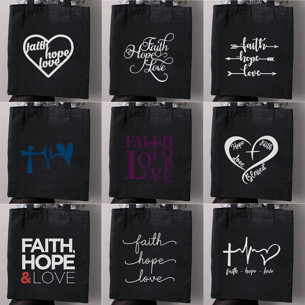 Вера надеюсь любовь 2021 женские сумки Холщовая Сумка женская черная хозяйственная сумка эко многоразовые сумки через плечо шоппер продуктовые сумки