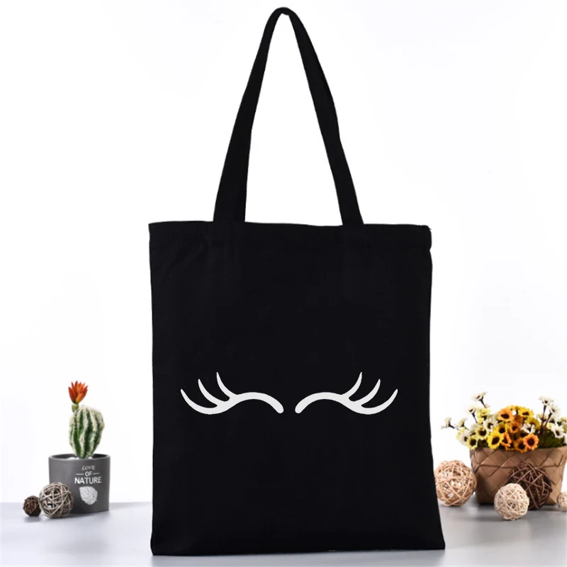 Модная женская сумка-тоут с принтом ресниц, черная Холщовая Сумка через плечо, женская сумка для покупок, многоразовые повседневные дорожные сумки