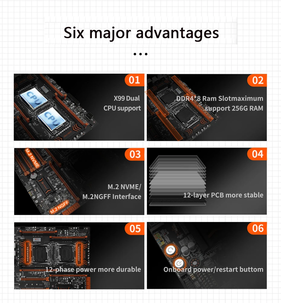 Материнская плата HUANANZHI X99 с двойным процессором, 256 ГБ, M.2 ...