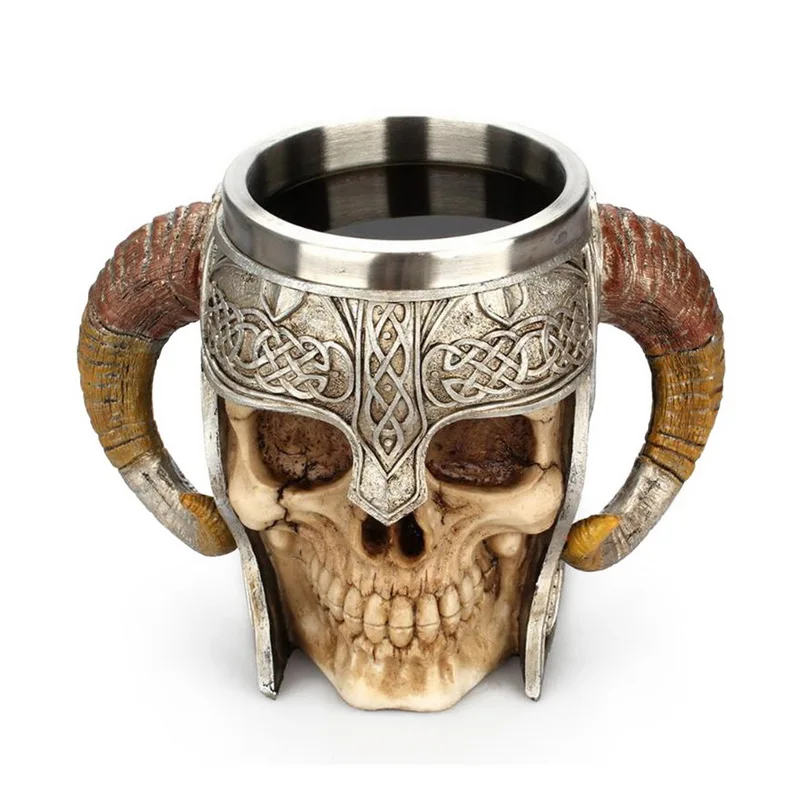 Кружка в виде черепа, викингов, ретро кружка для пива из полимерной нержавеющей стали, рыцарская кофейная чашка на Хэллоуин, креативная чайная кружка викингов, украшение для паба, бара