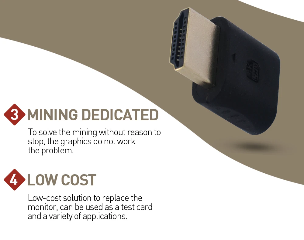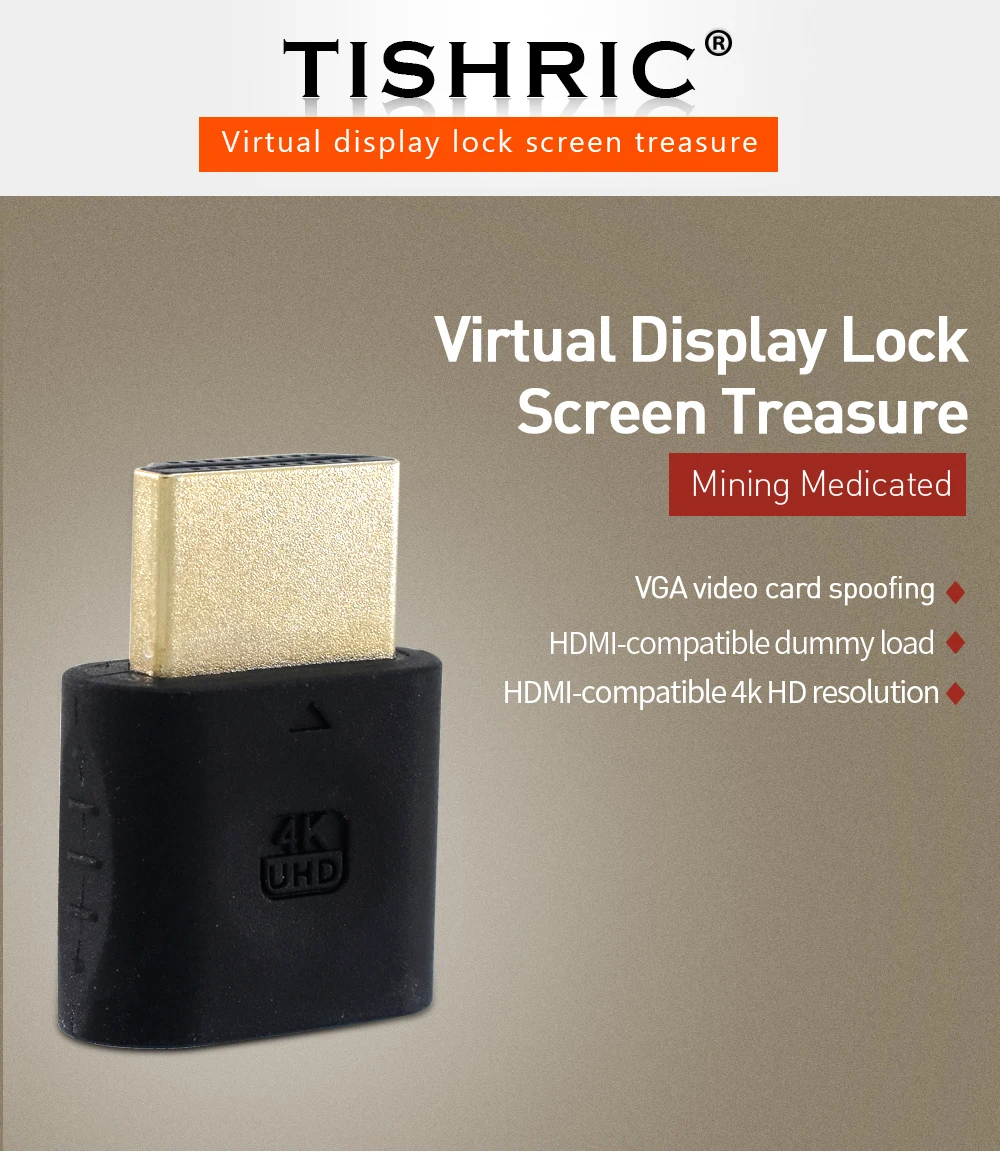 Адаптер-эмулятор монитора TISHRIC, виртуальный дисплей, совместимый с HDMI фиктивный разъем DDC EDID, виртуальная вилка для майнинга биткоинов