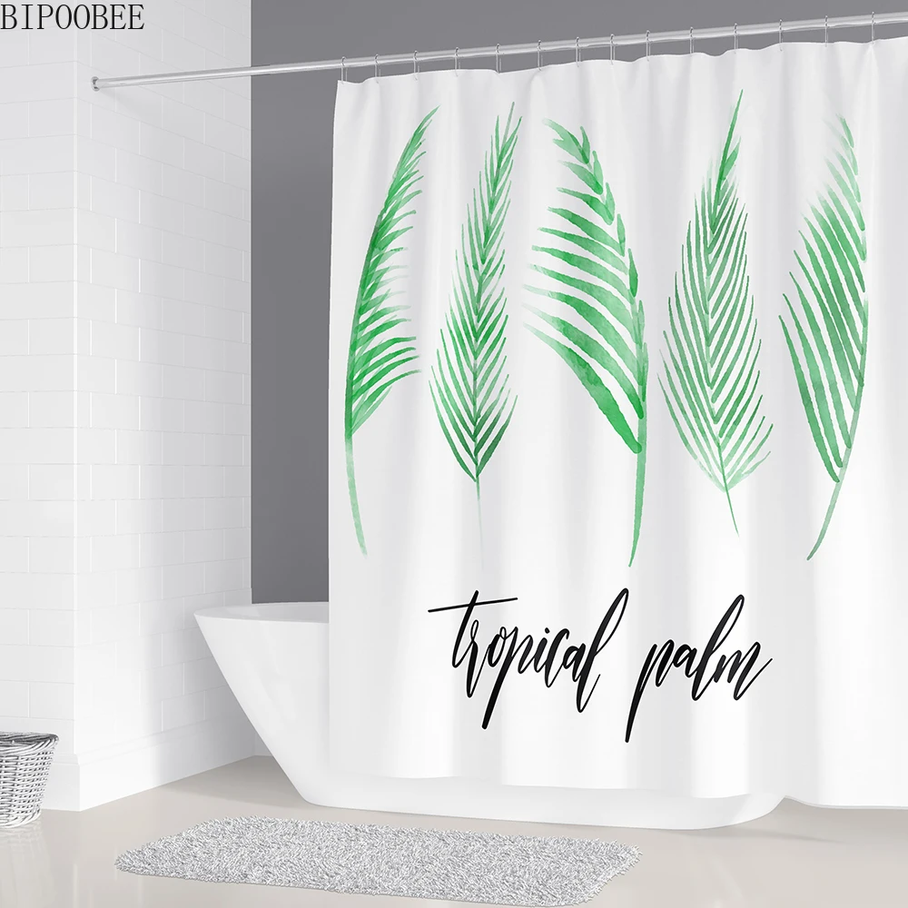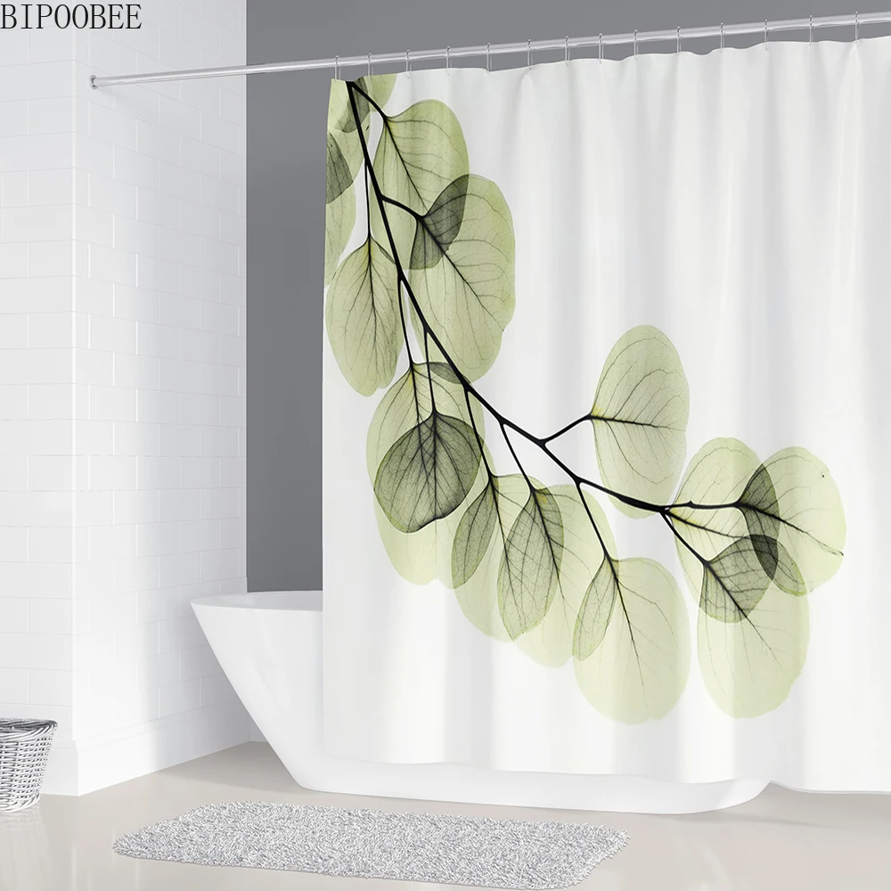 Занавеска для душа, водостойкая, с принтом натуральных листьев, 12 крючков