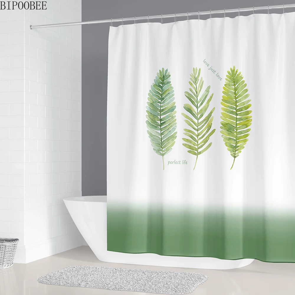 Занавеска для душа с принтом зеленых листьев, водонепроницаемая зан...