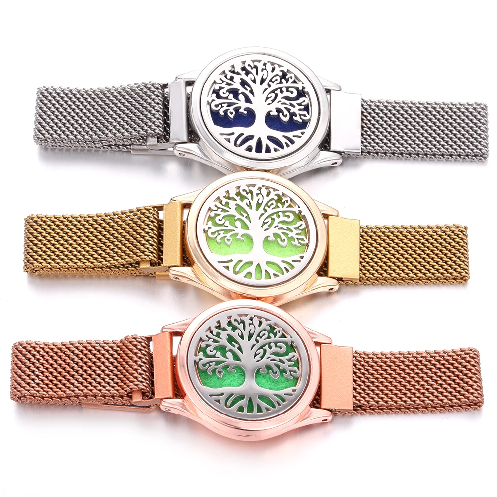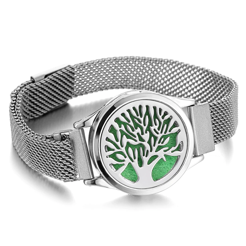 Ароматерапия ювелирные изделия Древо жизни браслет Регулируемая цепь духи аромат диффузор медальон браслет мужские часы браслет