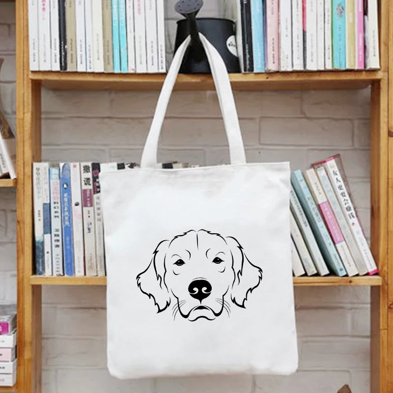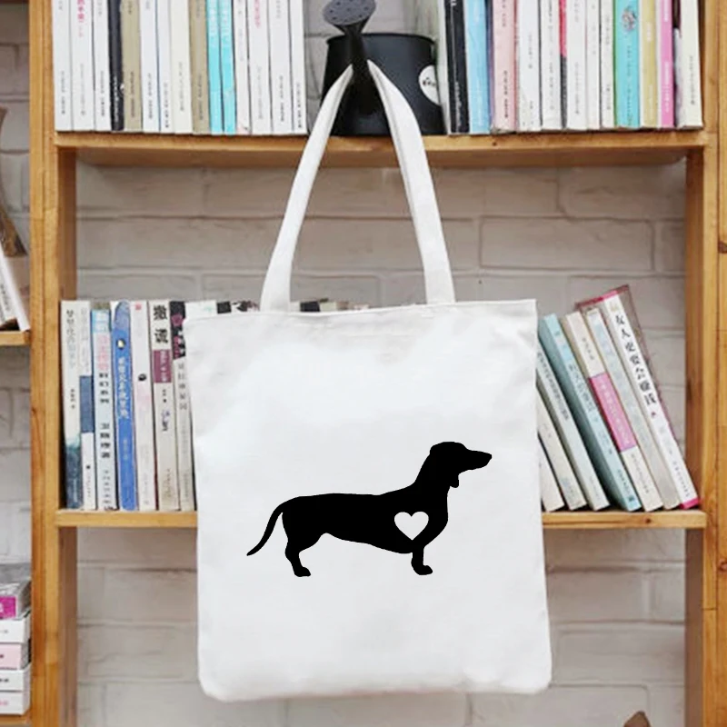 Женская сумка-тоут для покупок, белая холщовая сумка с принтом собаки, эко многоразовая модная повседневная сумка, женская сумка на плечо, сумки хараджуку