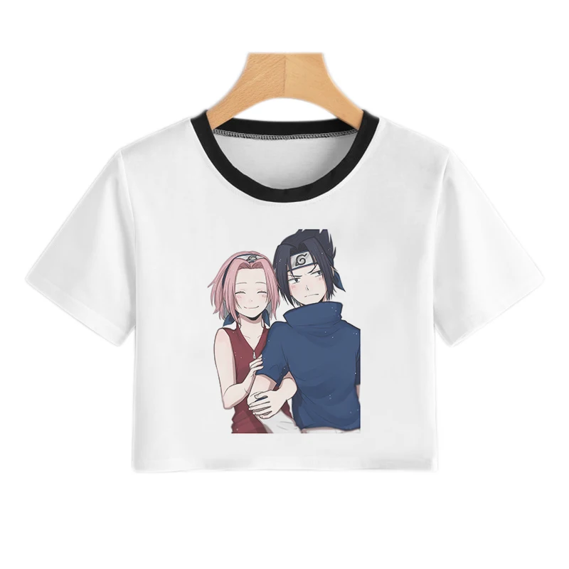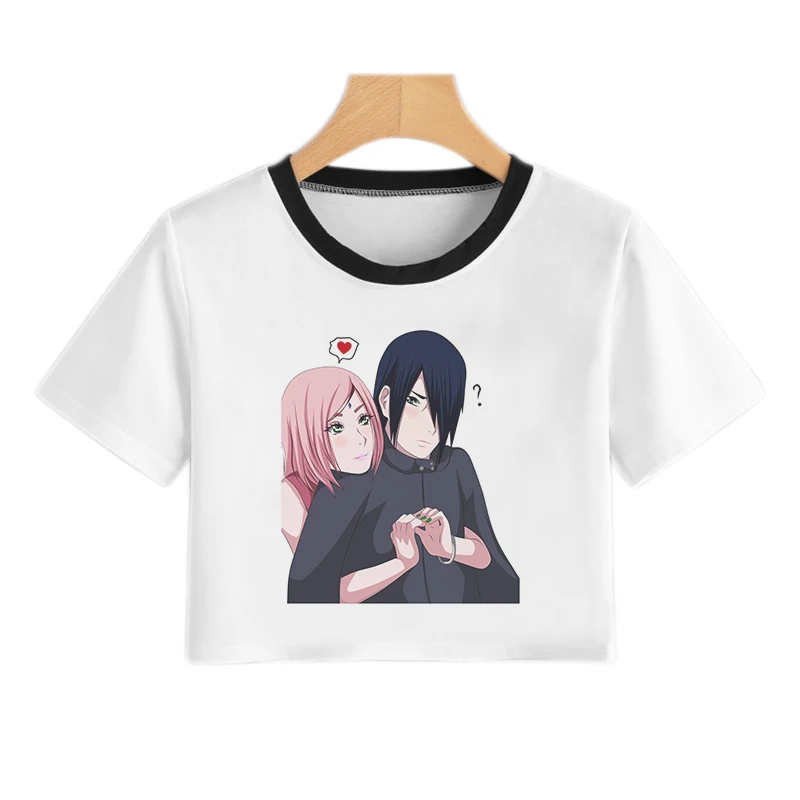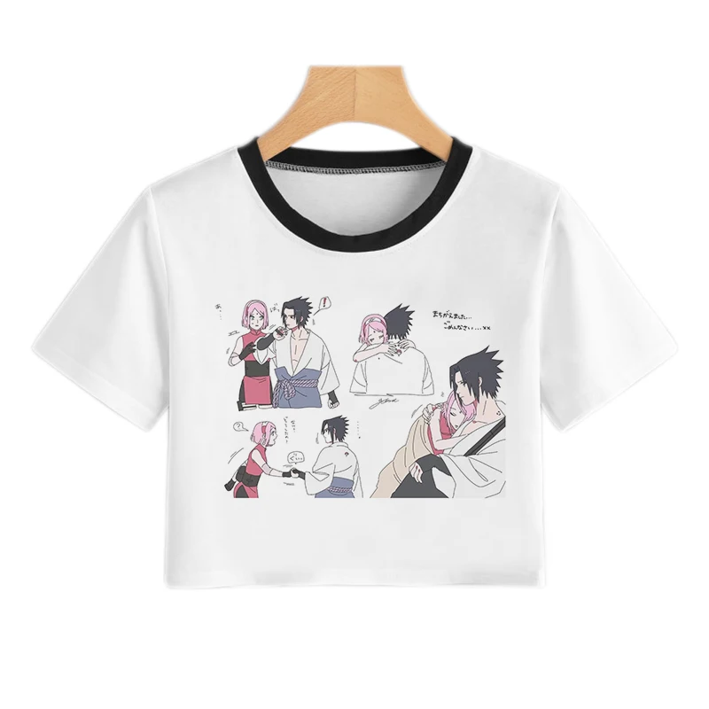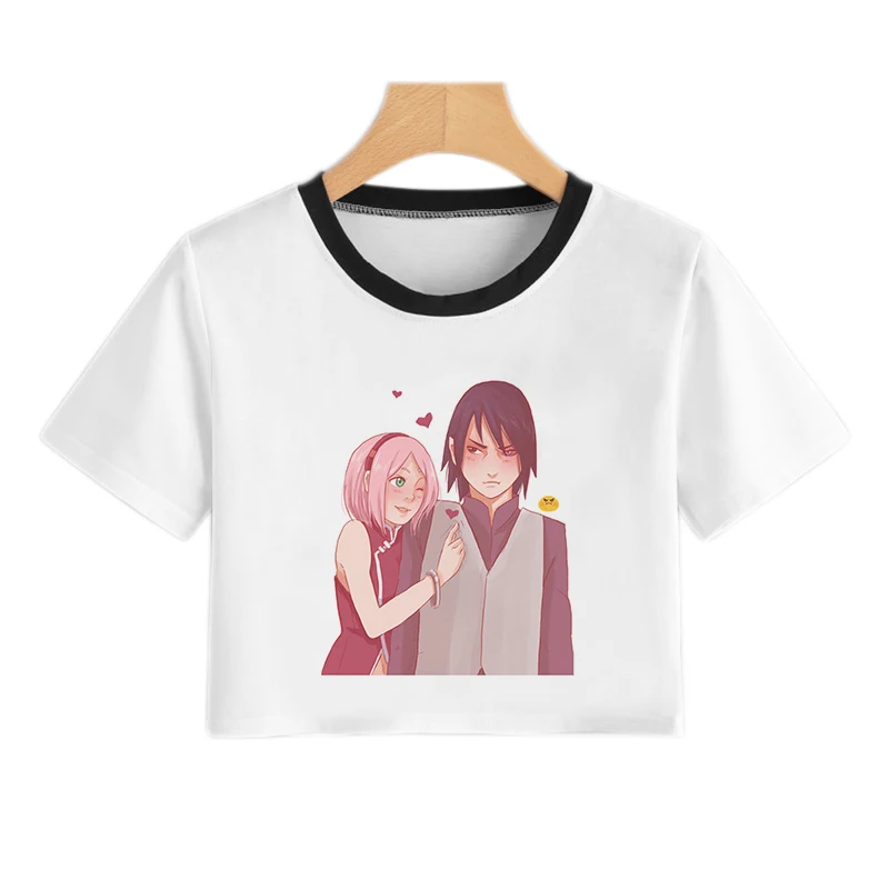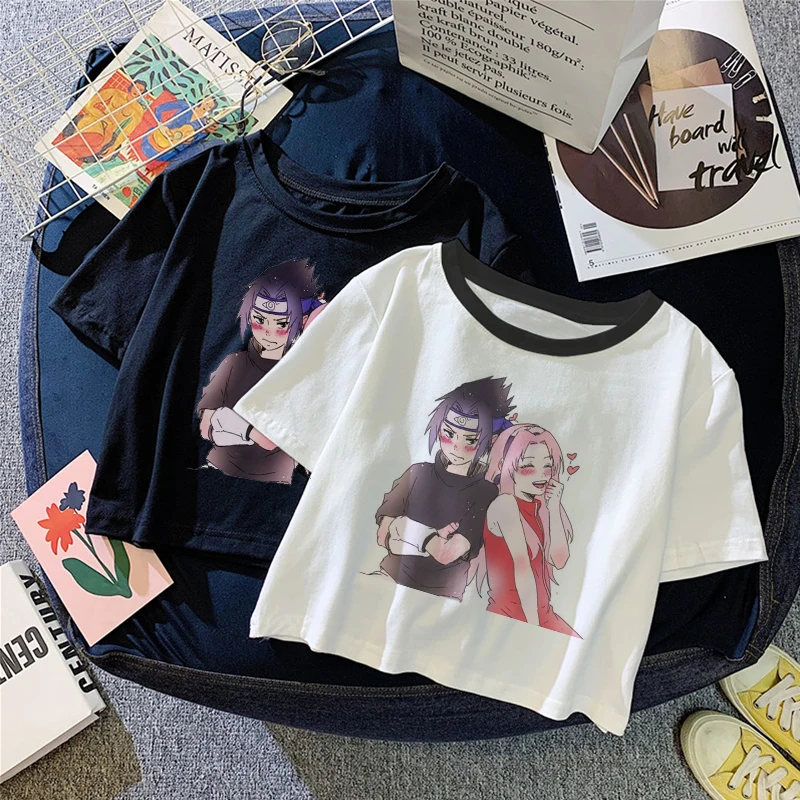 Футболка с забавным мультяшным рисунком Саске Акацуки, укороченный топ в японском аниме, Повседневная Уличная одежда в стиле Харадзюку, хип-хоп, 2021