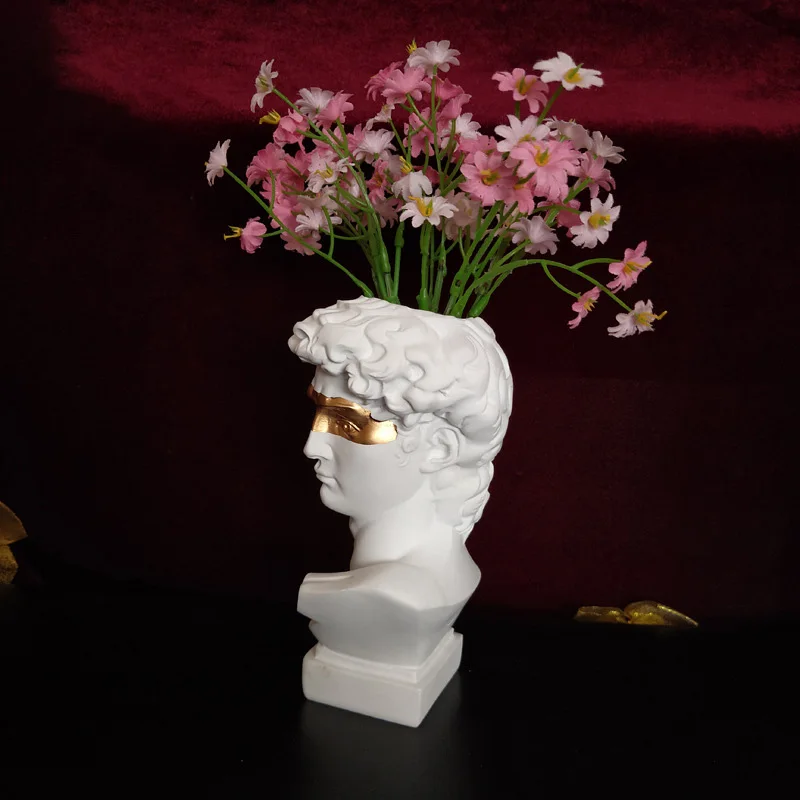 Ваза из смолы с человеческим лицом, украшение для дома, ящик для хранения кистей для макияжа, статуэтка, скульптура, модель, орнамент