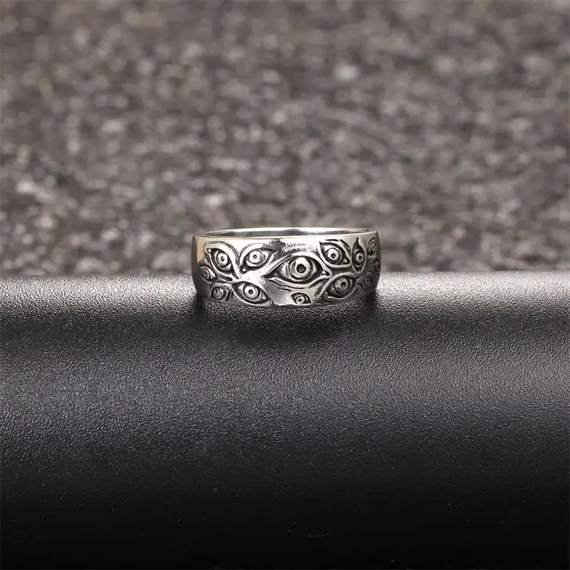 Мужское кольцо в стиле ретро панк с резьбой в виде глаз дьявола