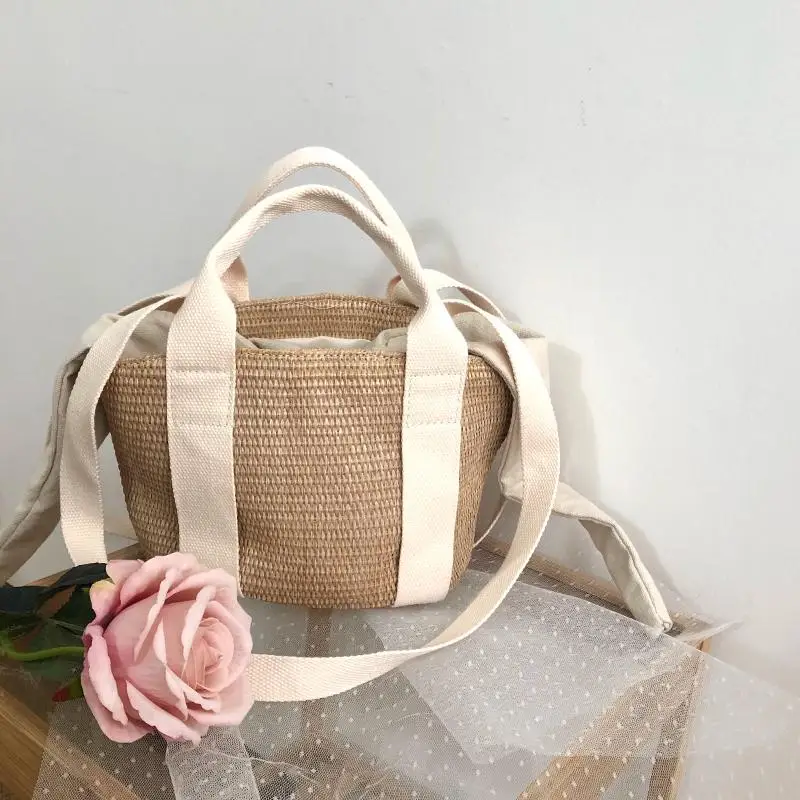 Женские маленькие соломенные сумки-ведра, летние пляжные сумки-тоут...