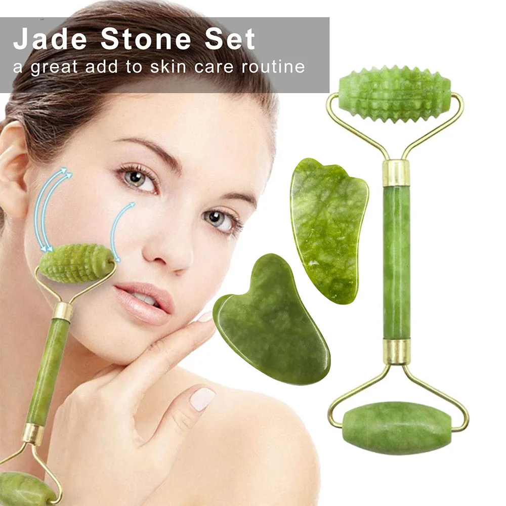 3 шт. нефритовый валик массажного Красота инструмент гуаша Антивозрастной уход за кожей Массажер для лица