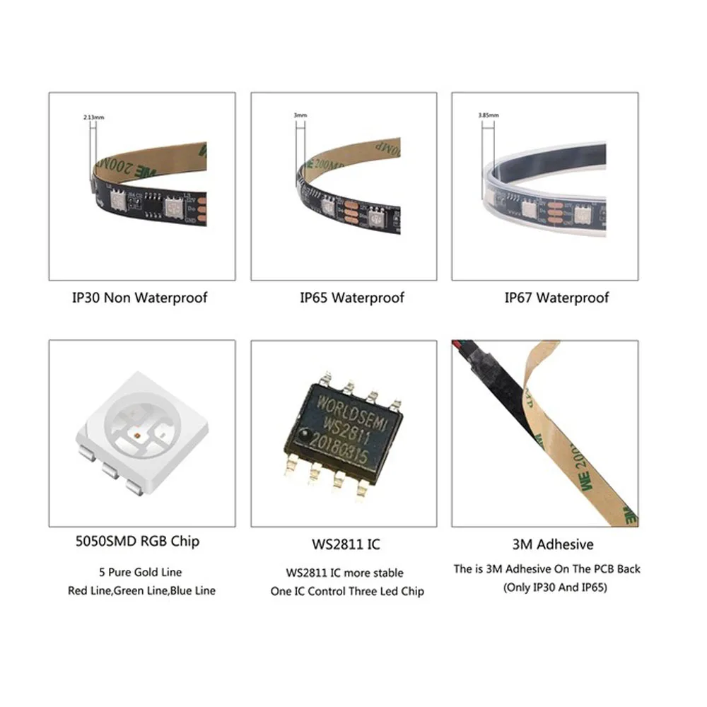 Примечание:WS2811 должен использовать источник питания DC12V и светодиодный контроллерЦвет печатной платы:Белый: белый PCBЧерный: Черный PCBСтепень защиты:(1) IP30 --- не водонепроницаемый, для использования в помещении(2) IP65 --- силиконовое покрытие, легко режется, наружное использование(3) IP67 --- силиконовая трубка, требуется повторное запечатывание после резки, уличное использованиеWS2811 ленточный светильник Параметры продукта:(1) Рабочее напряжение: 12 В постоянного тока(2) Светодиодный источник: SMD 5050 RGB(3) светодиодный чип: Epistar(4) светодиодный Кол-во: 30/48/60 светодиодный/м(5) IC Кол-во: 10/16/20 шт./м(6) Мощность: 9/14.4/18 Вт/м(7) серые Весы: 256/цвет(8) портативность: 3 светодиодный s/резка (внешний 2811 ic, 1 ic контроль 3 светодиодный)(9) угол луча: 120 °(10) режим цвета: 133 рисунка и 100 скоростей(11) Размер: 5000 мм x 10 мм x 2,4 мм(12 дюймов) Упаковка: 5 м/Катушка 12 WS2811 rgb полосы + 3 контактный разъем(13) Гарантия: 1 годОсобенности:(1) гибких печатных плат (IP30,IP65) с 3M клейкая лента на задней части для легкая установка.(2) Энергосбережение и защита окружающей среды.(3) Высокая яркость 5050 SMD светодиодный светильник полосы.(4) твердость, высокая ударная или Виброустойчивость.(5) низкое энергопотребление, высокая интенсивность.(6) соответствует контроллеру RGB и системе поставщика питания.(7) Широкий угол обзора.(8) Доступно в различных одиночных и RGB цветах.Простая установка, каждый светодиодный светильник может быть произвольным отключением, хорошей гибкостью, простой установкой, может быть произвольнымЦветовое освещение мечты, контроллер подходит для использования, может отображаться красочная занавес-вверх/поток воды/капля дождя/скачок вспышки и так далее сотни световых эффектов,Вы также можете редактировать анимационный эффект с помощью программного обеспечения Coreldraw/Flash/LedEdit. Проект освещения города, освещение развлекательных и развлекательных мест.21 ключ RF DC контроллер спецификация продуктаНапряжение: DC5V-24VТок: <10 мАТемпература: -20 ~ 60CВес: 30 гМаксимальное количество точек управления: 1024 точекДлина управления: <30 мОсобенности:1>. Напряжение питания этого контроллера является DC5-24V, пожалуйста, никогда не Подключайтесь к другим или ac220в.2>. Пожалуйста, подключите vire, обратитесь к схеме проводки на этикетке, короткое замыкание не допускается.3>. Гарантия контроллера в течение одного года, однако, исключают нестабильную ситуацию, поврежденную или перегруженную работуПосылка включает в себя:1/DC5V-24V 21 клавиша RF Светодиодный контроллер (без батареи) + WS2811 светодиодный блок питания + 12 В 3A2/только 1 м 30/60 светодиодов WS2811 полосы светильник (без аккумулятора)