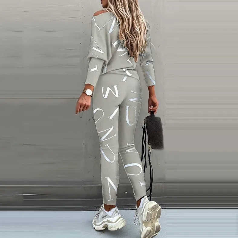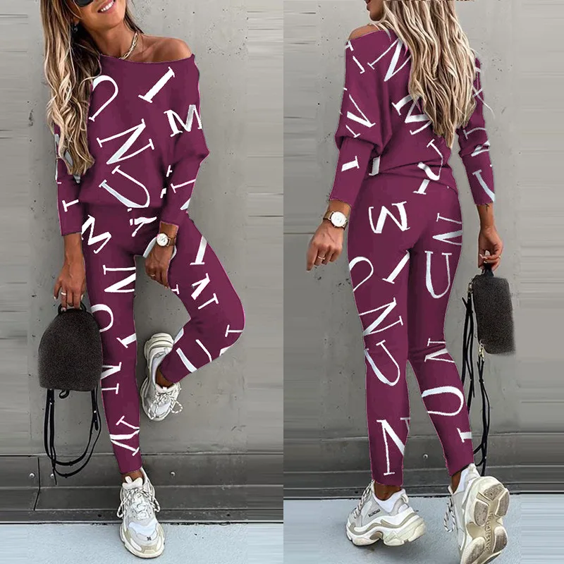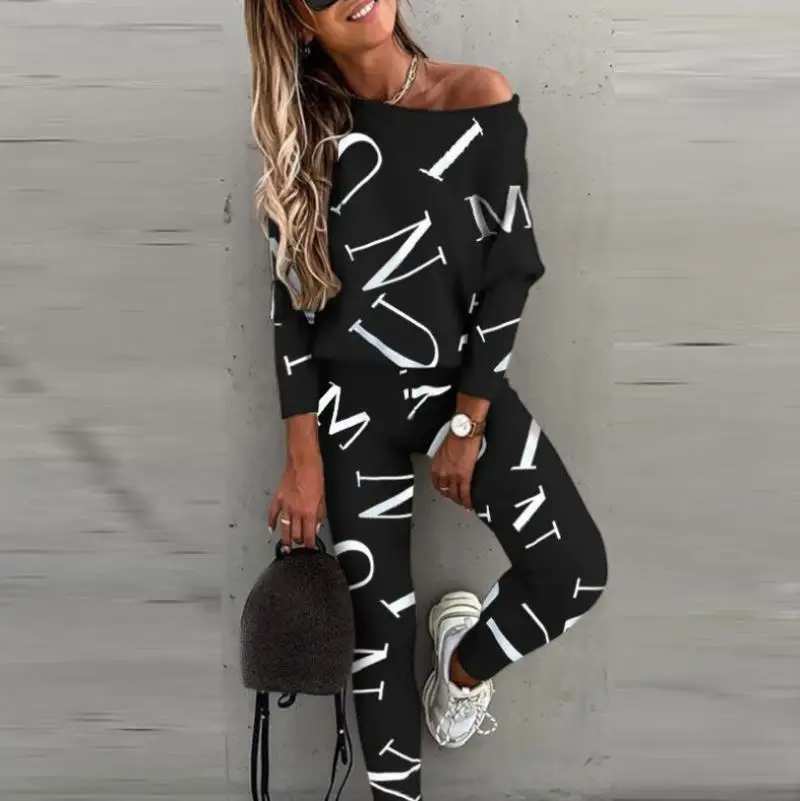 Женский спортивный костюм, свитшот с буквенным принтом и штаны, спортивная одежда из двух предметов для улицы, весна 2021