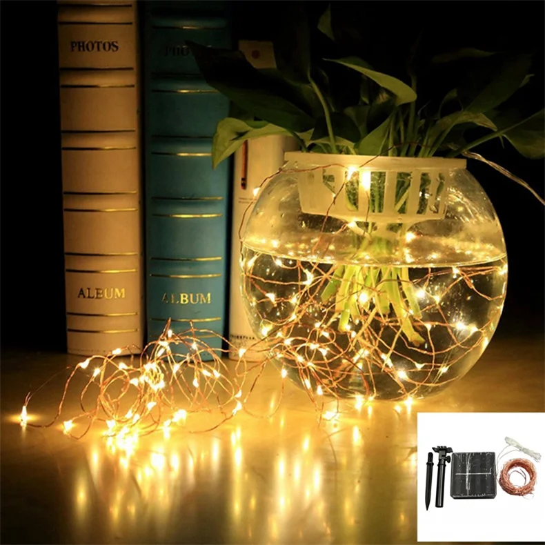 Светодиодная гирлянда на солнечной батарее, медный провод, рождеств...