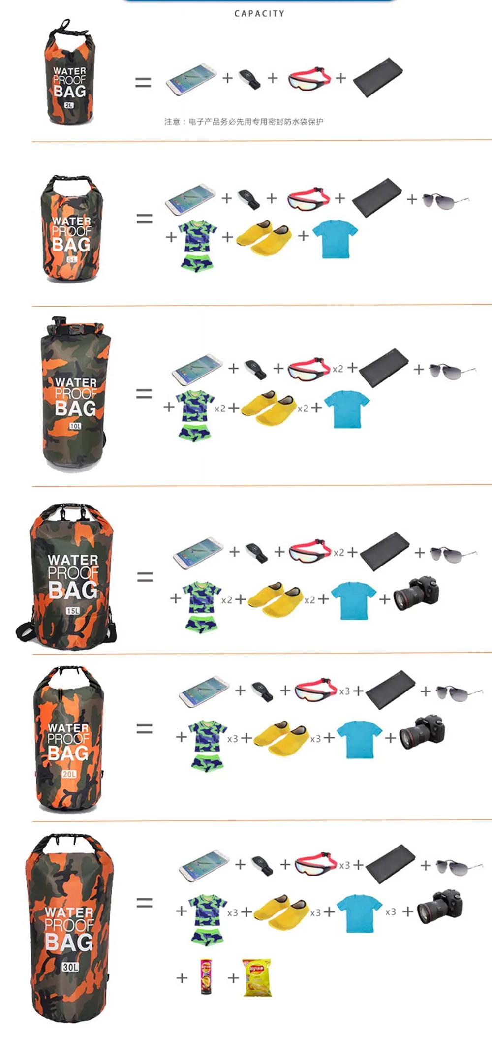 Водонепроницаемая сухая сумка из ПВХ, 2 л, 5 л, 10 л, 15 л, 20 л, 30 л, для рафтинга, дайвинга, плавания, реки, трекинга, океана, камуфляжный рюкзак, складной