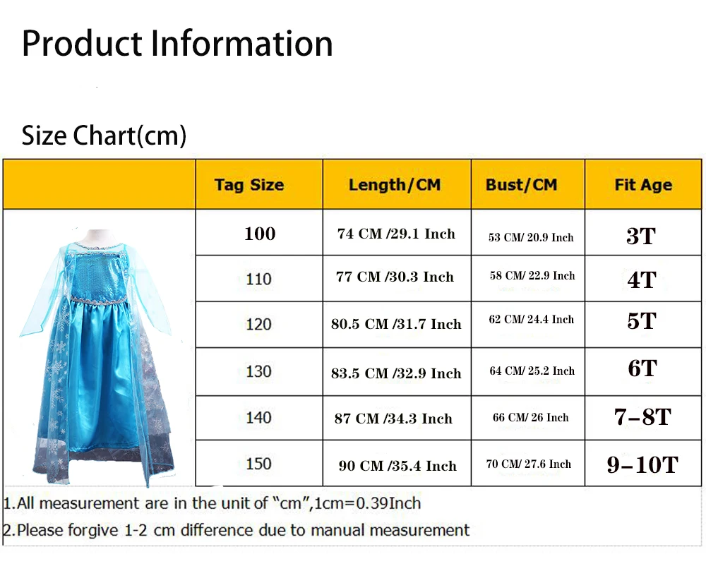 Платье принцессы для девочек 3-10 лет, Снежная королева