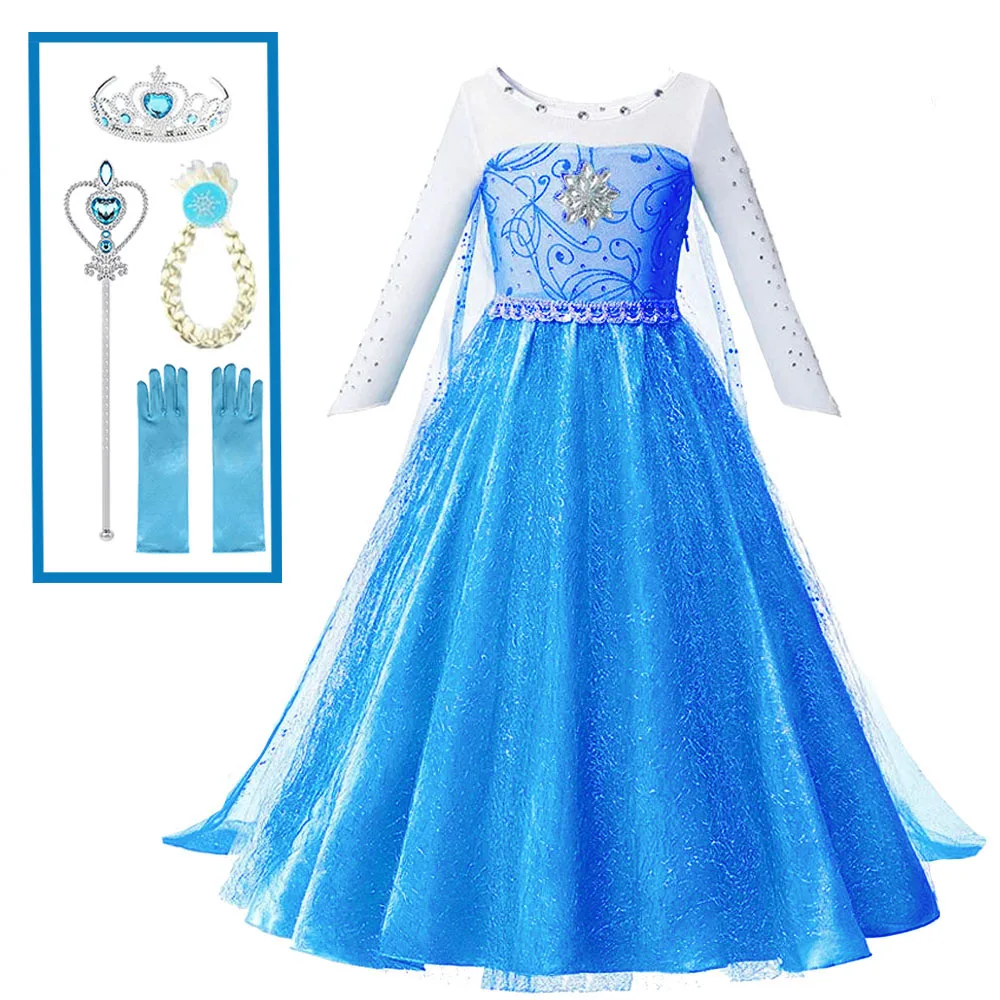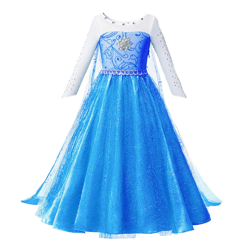 Платье принцессы Эльзы Снежной королевы детские платья с длинным ру...