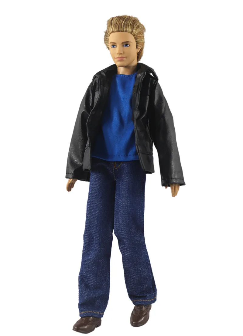 Комплект одежды для Кен мальчик кукла наряды костюм рубашка джинсовые штаны брюки черное кожаное пальто для Барби парень Кэн мужской DIY игрушки