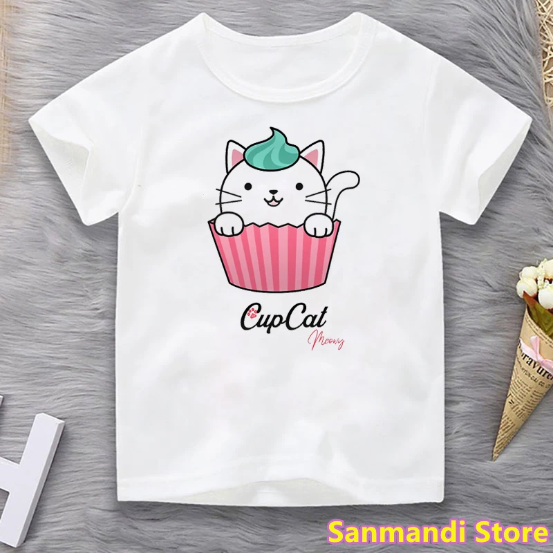 Футболка для девочек и мальчиков, милый мультяшный принт кошки и мо...