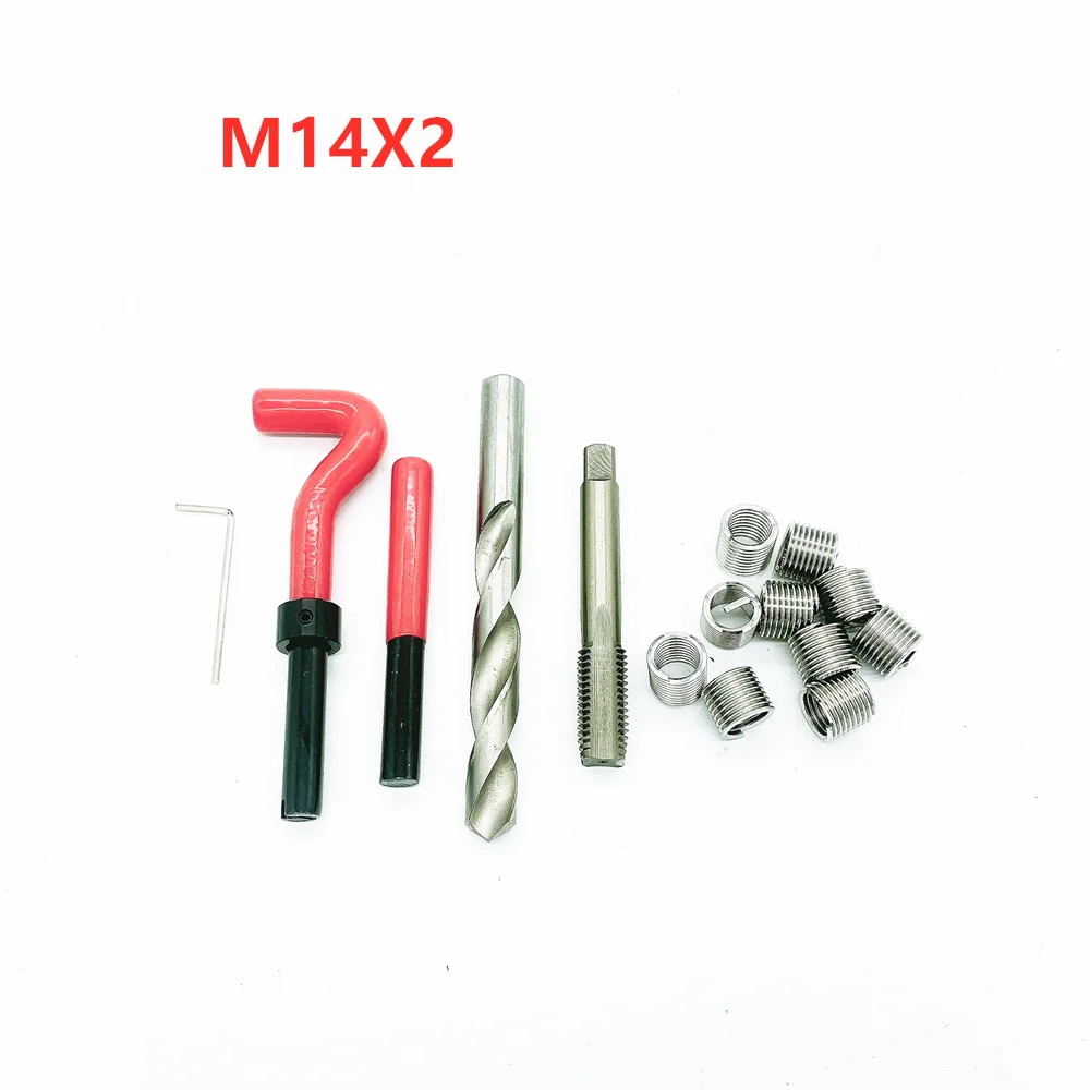 10 шт. M14X2 нить комплект инструментов для ремонта двигателя блок восстановления поврежденных потоков гаечный ключ, дюймовый стандарт спиральное сверло грубой комплект монтировок