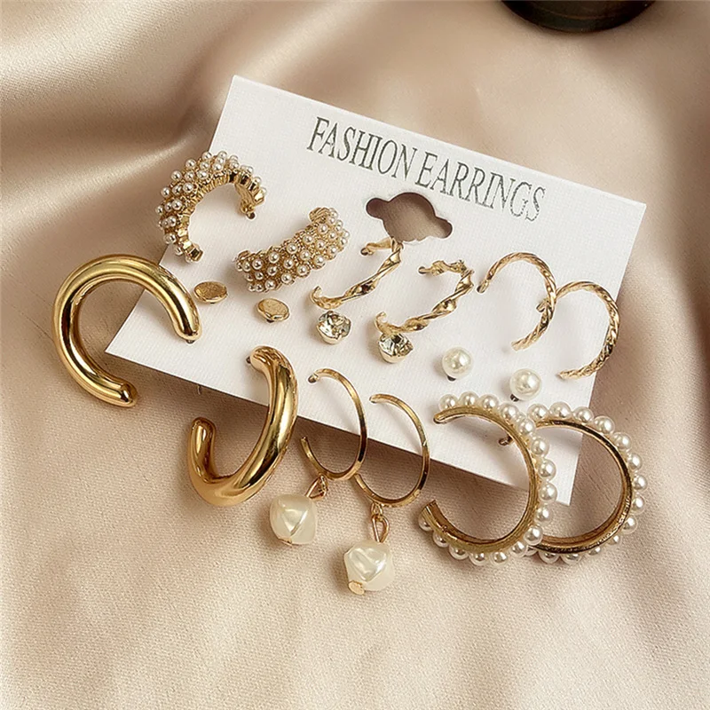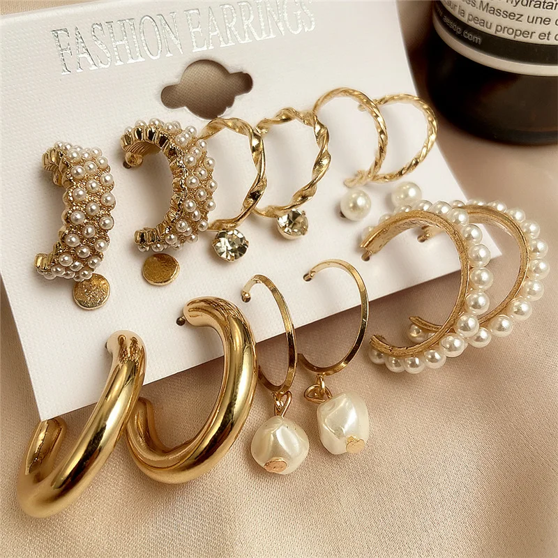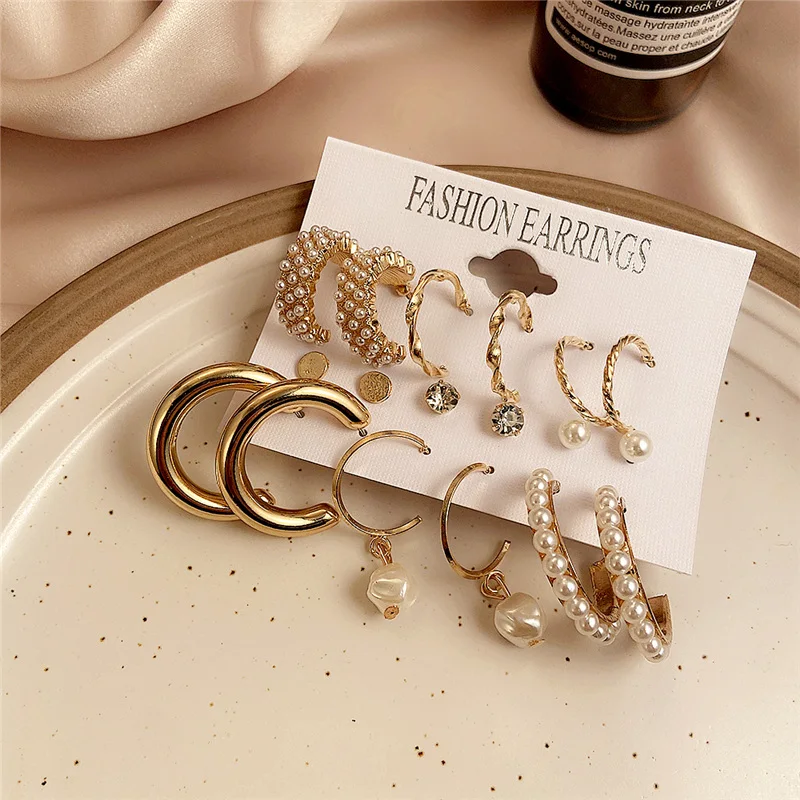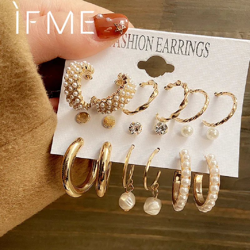 Если меня в Корейском стиле; Туфли, украшенные жемчугом, серьги-кольца для женщин с геометрическим рисунком Круг Золотой набор серег-колец для женщин Свадебные серьги 2020 ювелирные изделия