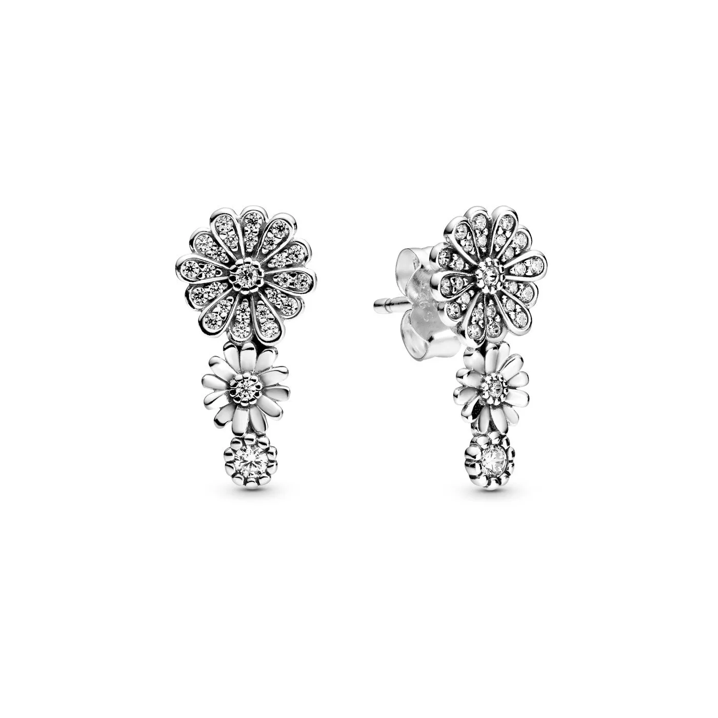 Женские серьги-гвоздики из серебра 100% пробы, с розовыми маргаритками