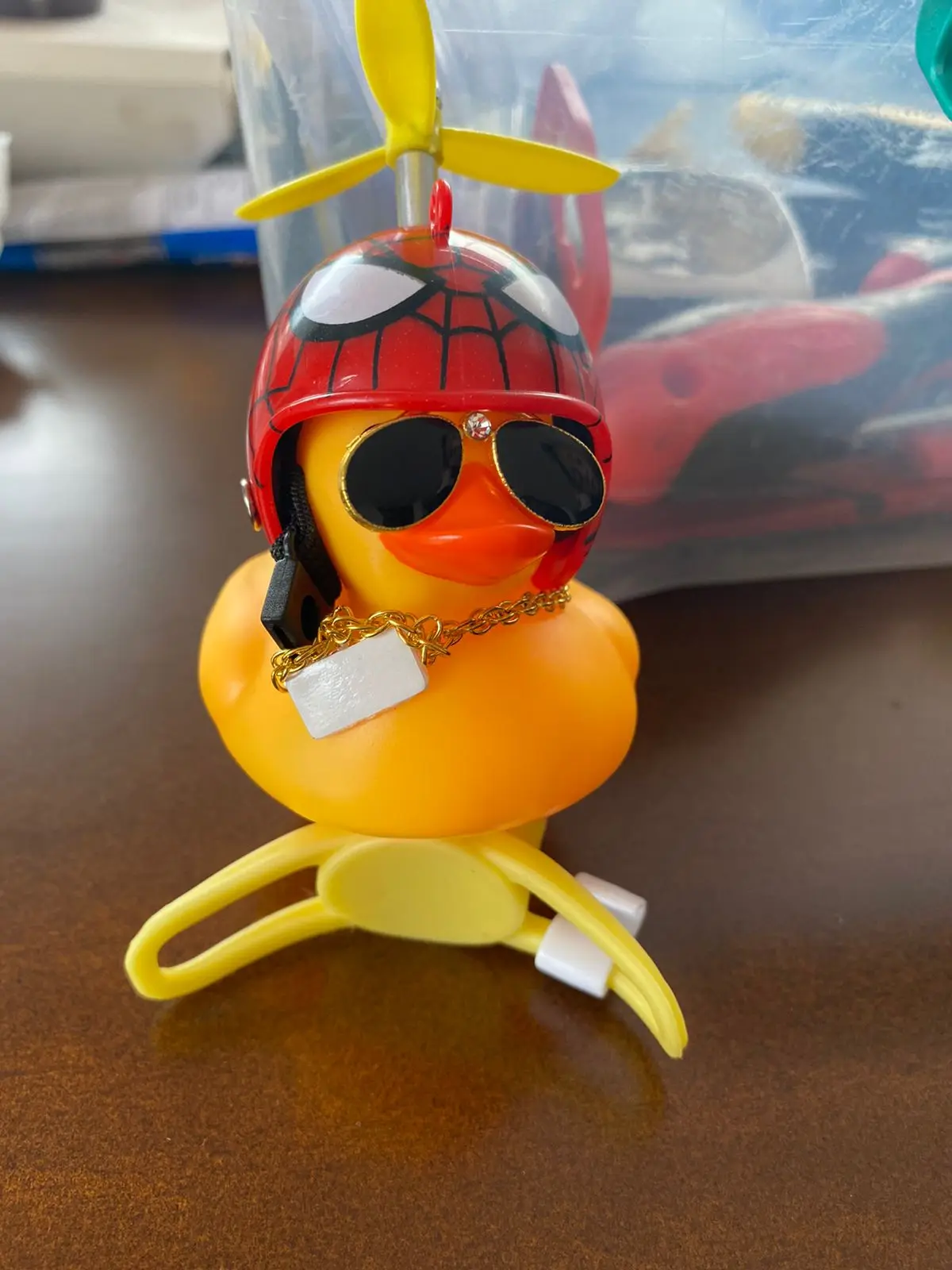 Novo e de alta qualidade.Pato amarello bonito na moda com capacete.Com capacete, parafuso de ar, óculos de sol, corrente de colar de metal, супер легальный.Com etiqueta lateral dupla e alça de fixaçao, é um tipo universal para carro e moto ou mototo.Também pode ser colocado no capacete das crianças quando estão patinando, é realmente adoramel.Специальный материал: