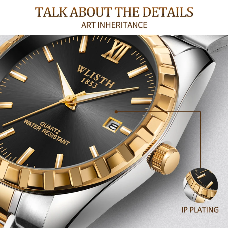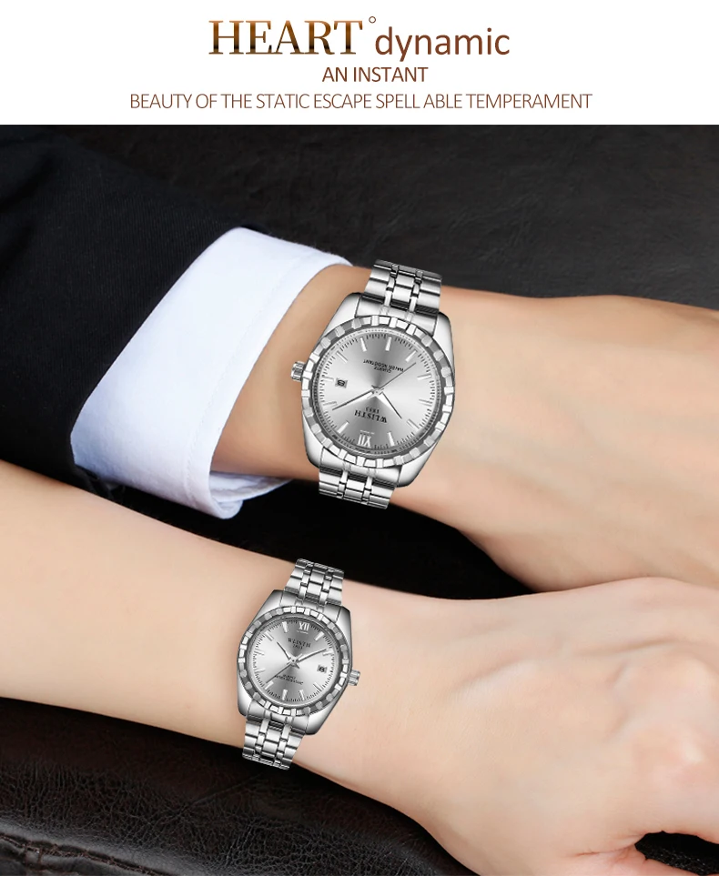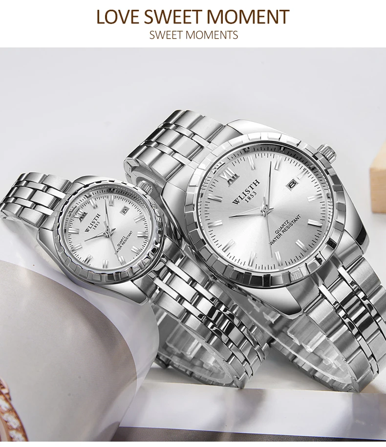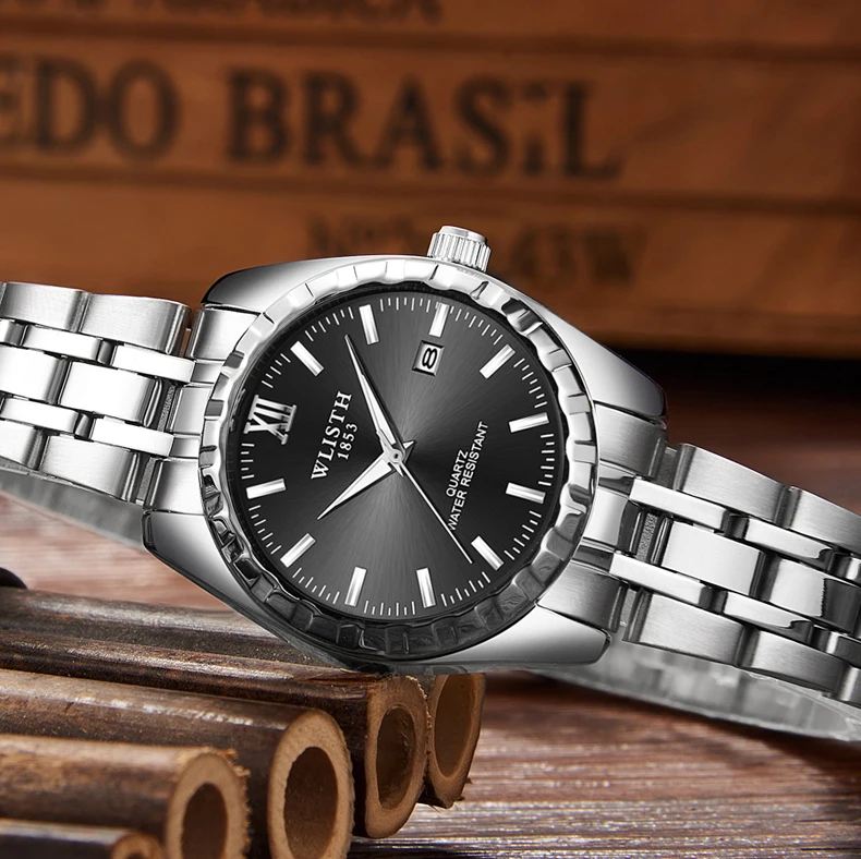 Часы WLISTH для мужчин и женщин, водонепроницаемые, со стальным ремешком