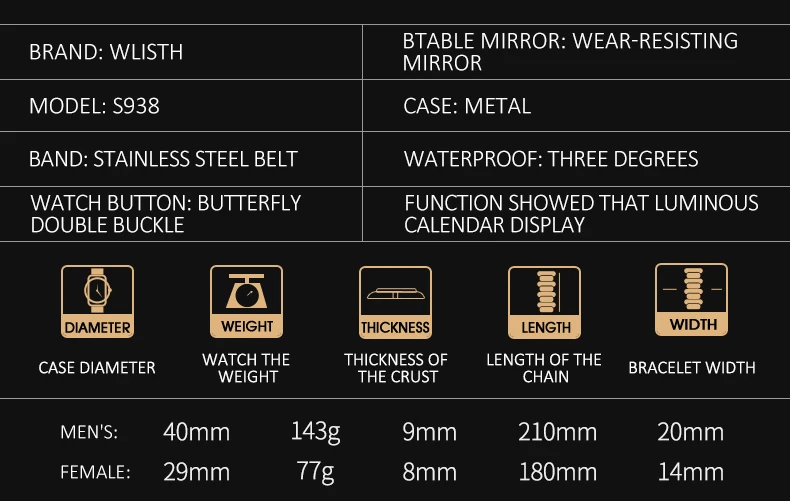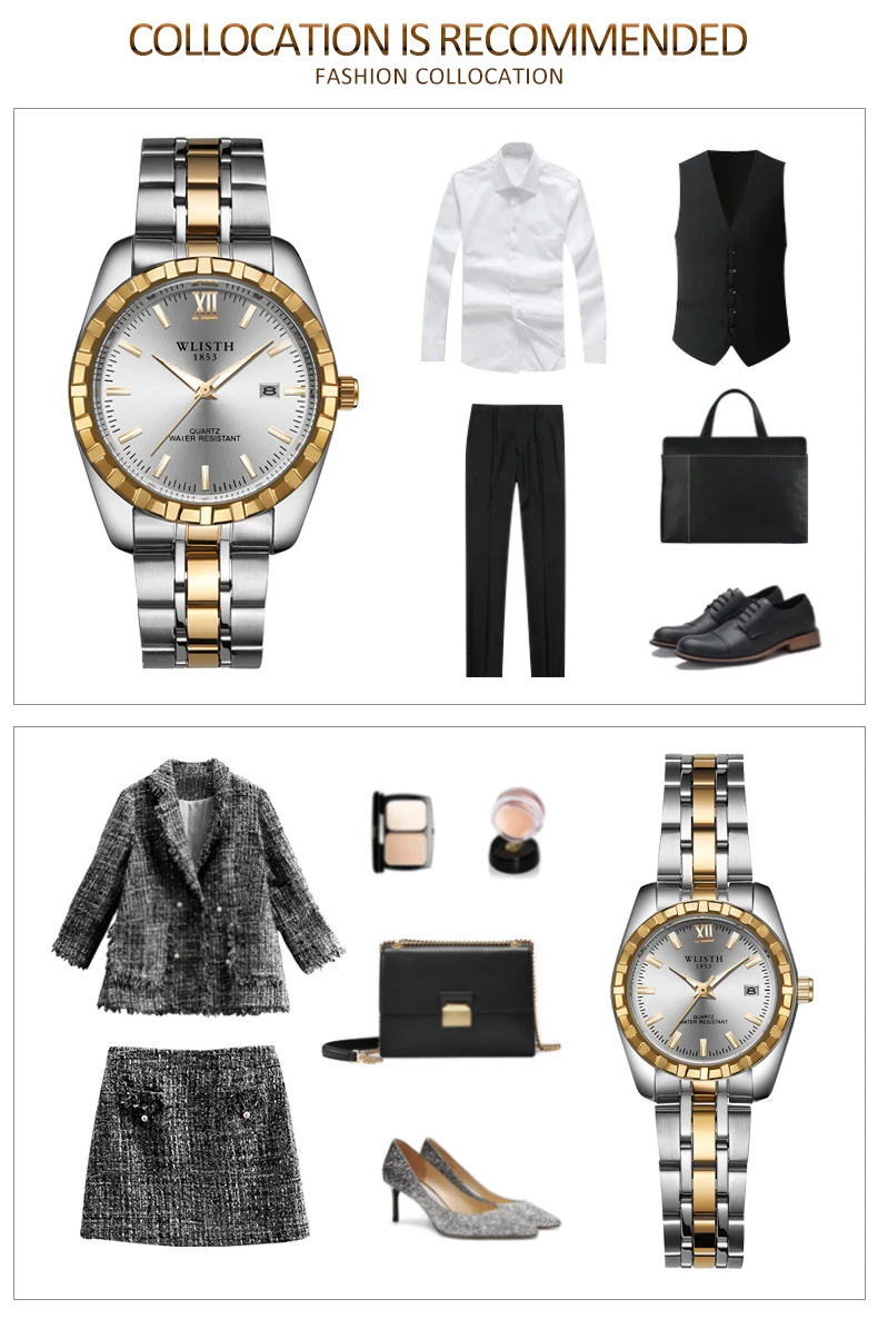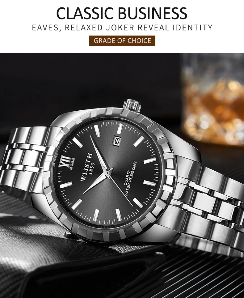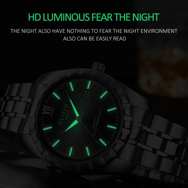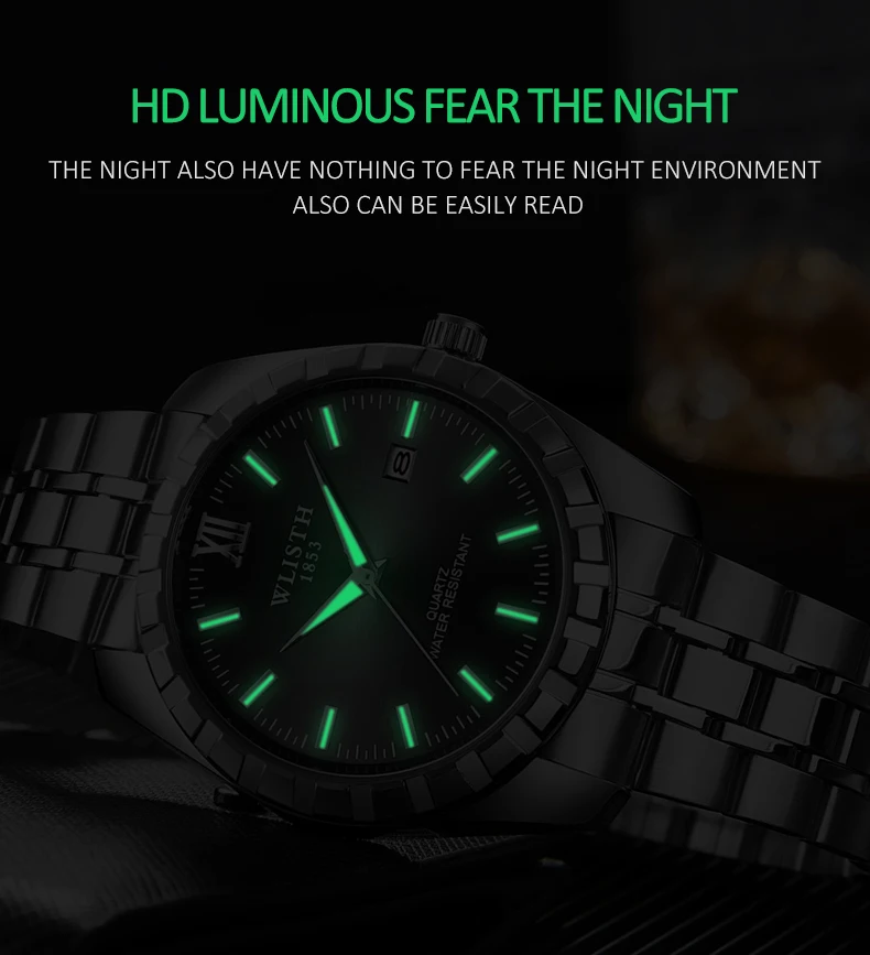 Часы WLISTH для мужчин и женщин, водонепроницаемые, со стальным ремешком