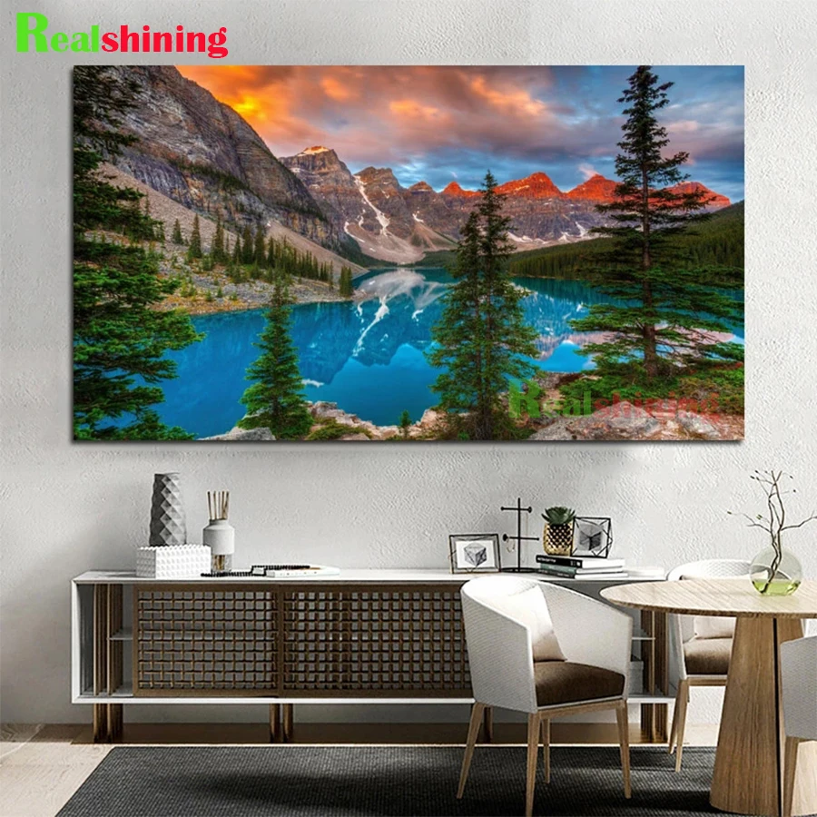 Алмазная живопись, природный пейзаж, закат, горы, Озеры, лес, 5d Вышивка крестиком, алмазная вышивка, мозаика в подарок N1825