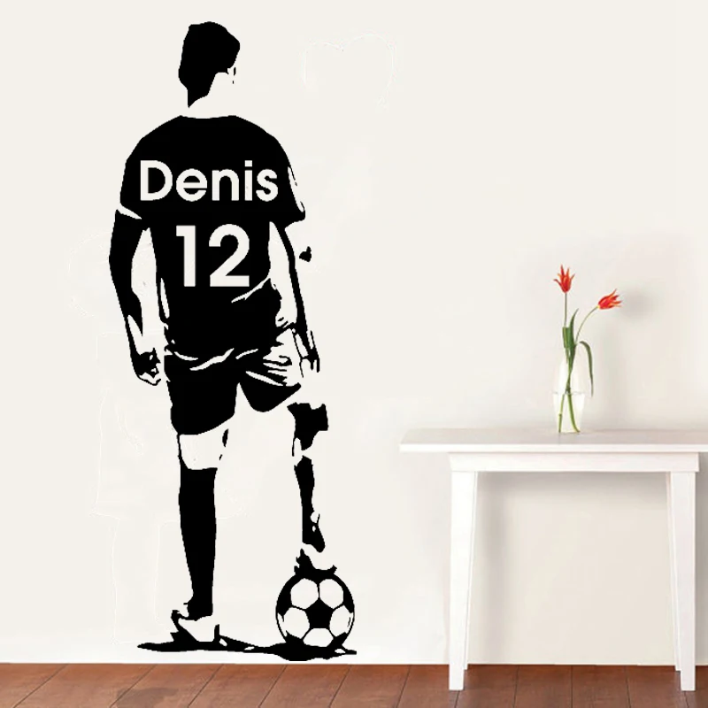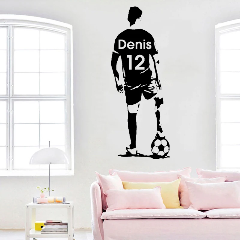 Настенная Наклейка с изображением футбольного игрока, Виниловая наклейка с именем на заказ, домашний декор для футбола, украшение для детской, спальни, гостиной, художественная роспись