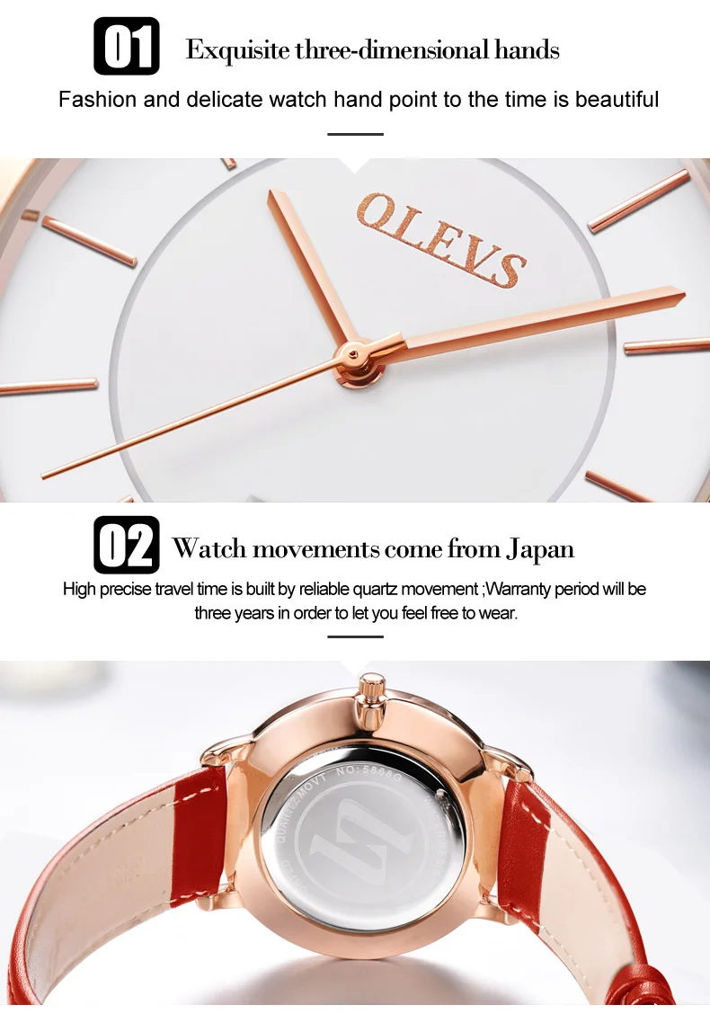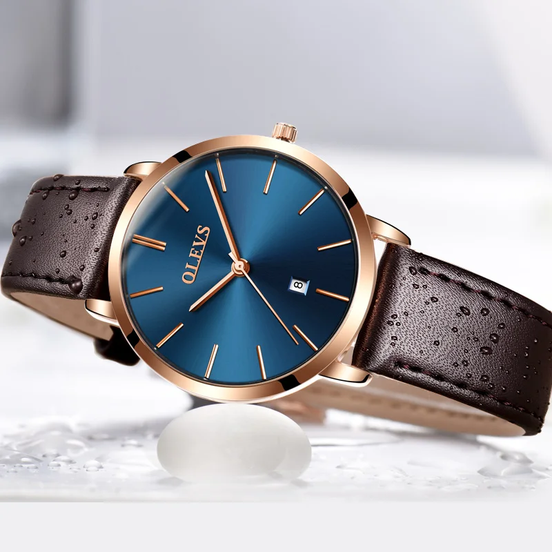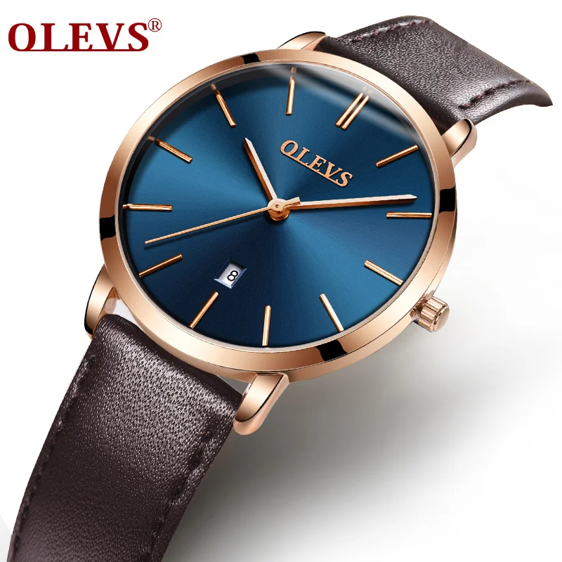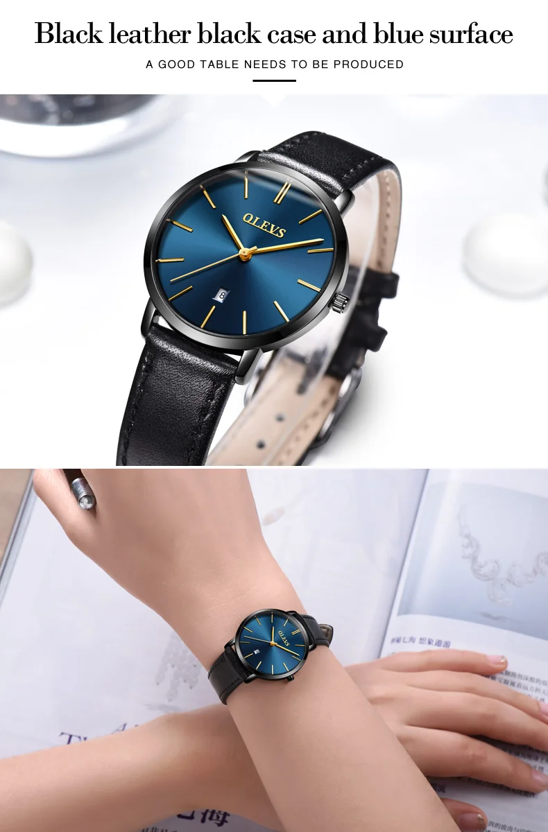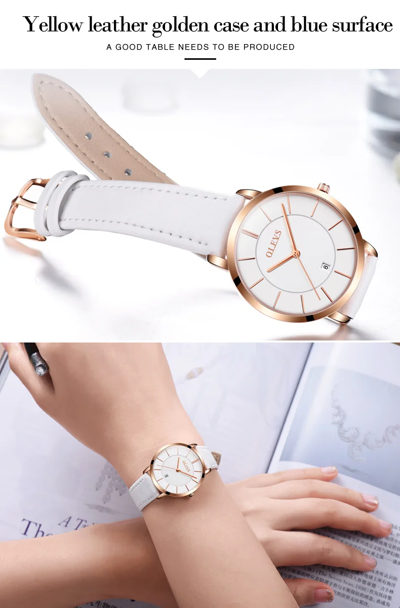 Повседневные женские часы OLEVS Топ люксовый бренд кожа Дамские Кварцевые женские наручные часы Тонкий Модный водонепроницаемый Montre Femme