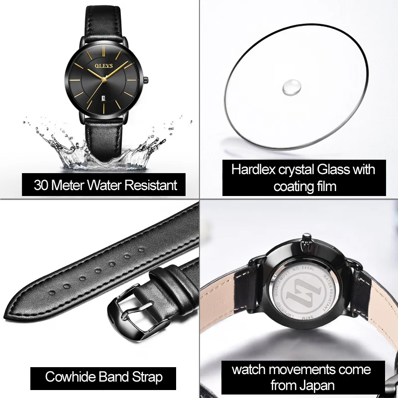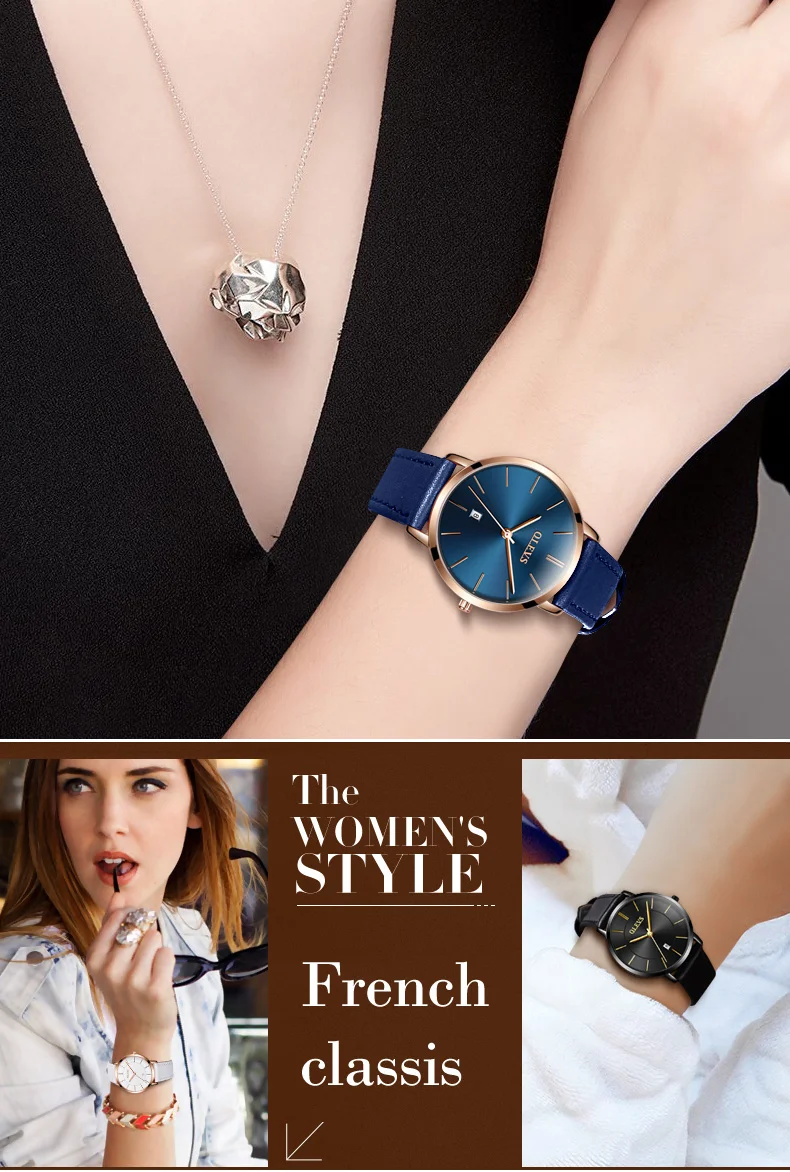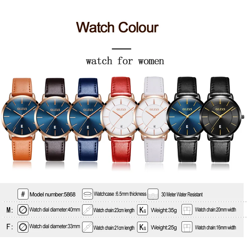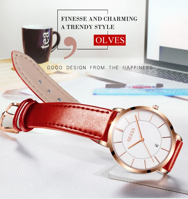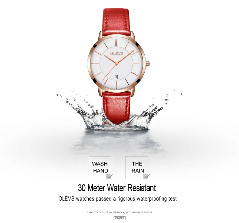 Повседневные женские часы OLEVS Топ люксовый бренд кожа Дамские Кварцевые женские наручные часы Тонкий Модный водонепроницаемый Montre Femme