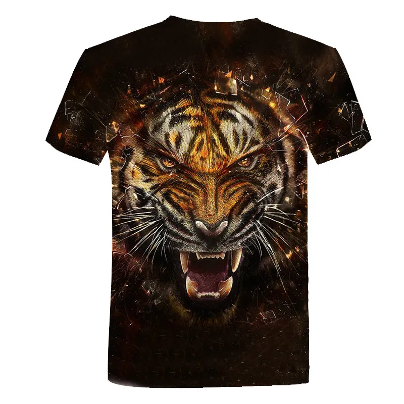 Футболка Мужскаяженская с коротким рукавом, модная рубашка с 3D-принтом в виде головы тигра и зверя, повседневная одежда для летнего сезона