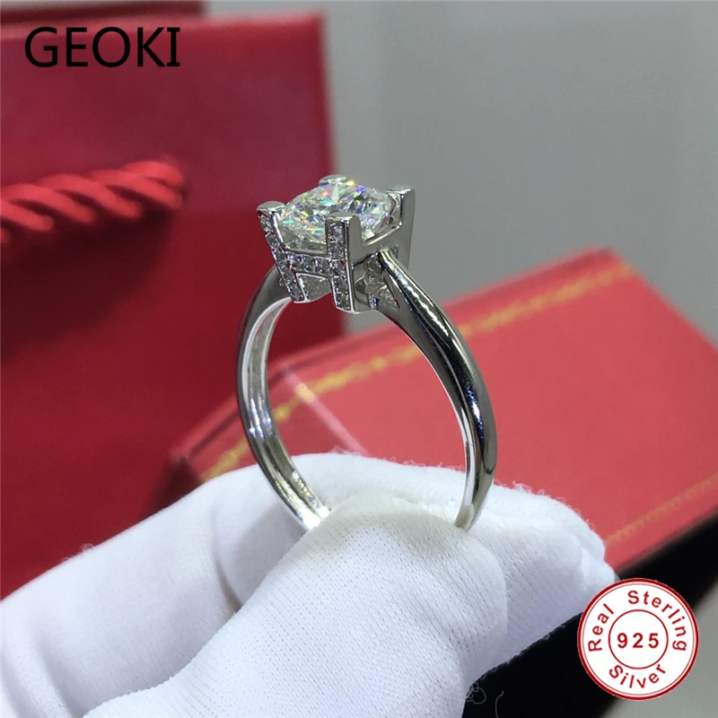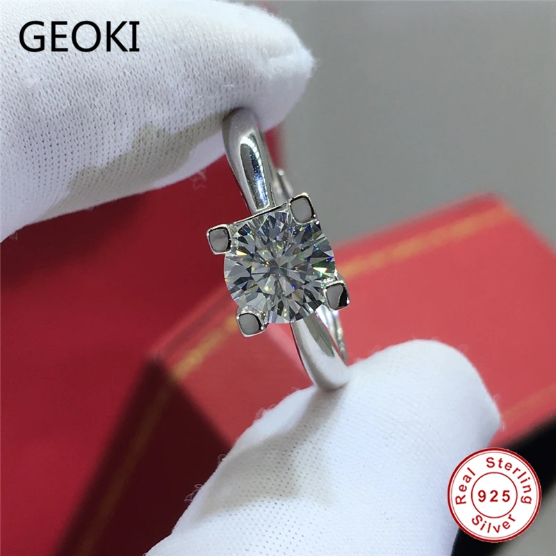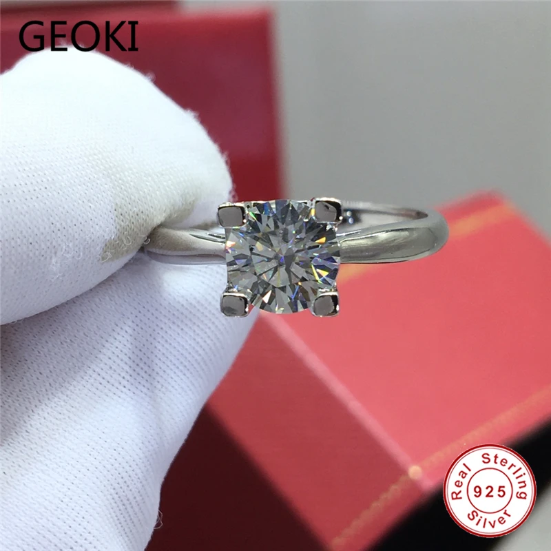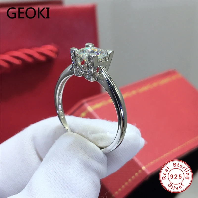 Geoki 925 пробы серебро прошел алмаз Тесты 1 Ct идеальный крой D Цв...