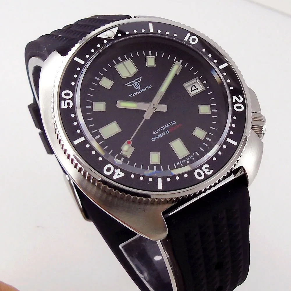 Автоматические Мужские часы для дайвинга, 44 мм, 200 м, PT5000NH35A, резиновый ремешок C3 Lume Hands, черный циферблат, сапфировое стекло