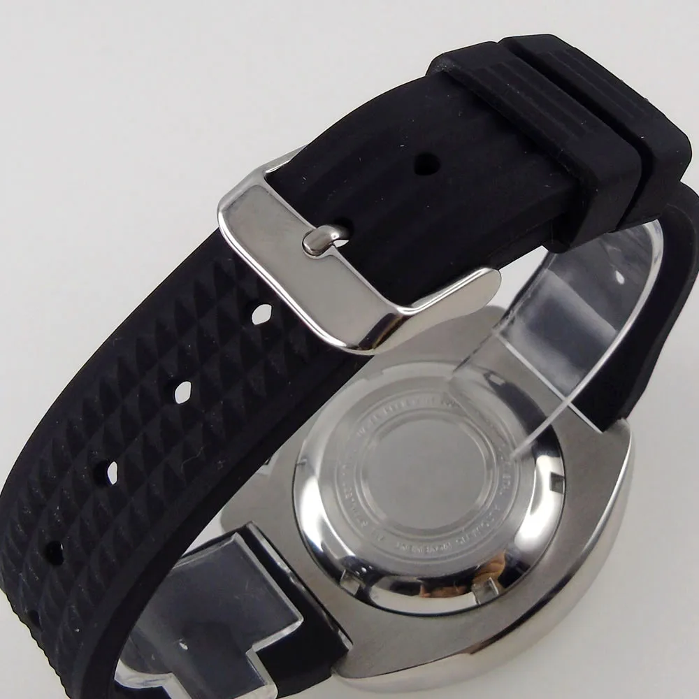 -- Механизм: 24 Драгоценности Seiko NH35 механический автоматический механизм.-- Материал корпуса: корпус из нержавеющей стали 316L-- Чехол Размеры: 44 мм Диаметр без короны, 14 мм толщина -Циферблат: черный, C3 Супер зеленый светящийся циферблат и стрелки-- Размер ремешка: ширина 20 мм-- Материал ремешка: резиновый ремешок-- Застежка: булавка-- Водонепроницаемость: 200 м-- Стекло: сапфировое стекло-Индикатор даты: Отображение даты в положении 3 часа-- Корона: винт в короне-- Безель: однонаправленный поворотный ободок, 120 кликов